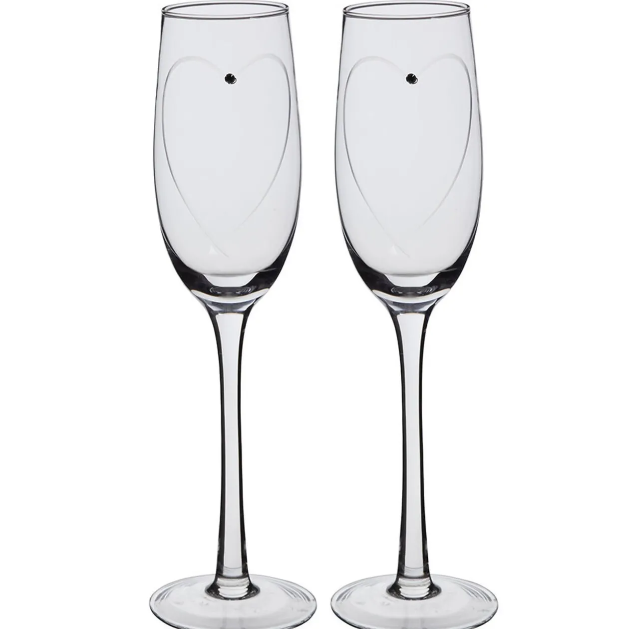2 flûtes à champagne motif coeur et strass.