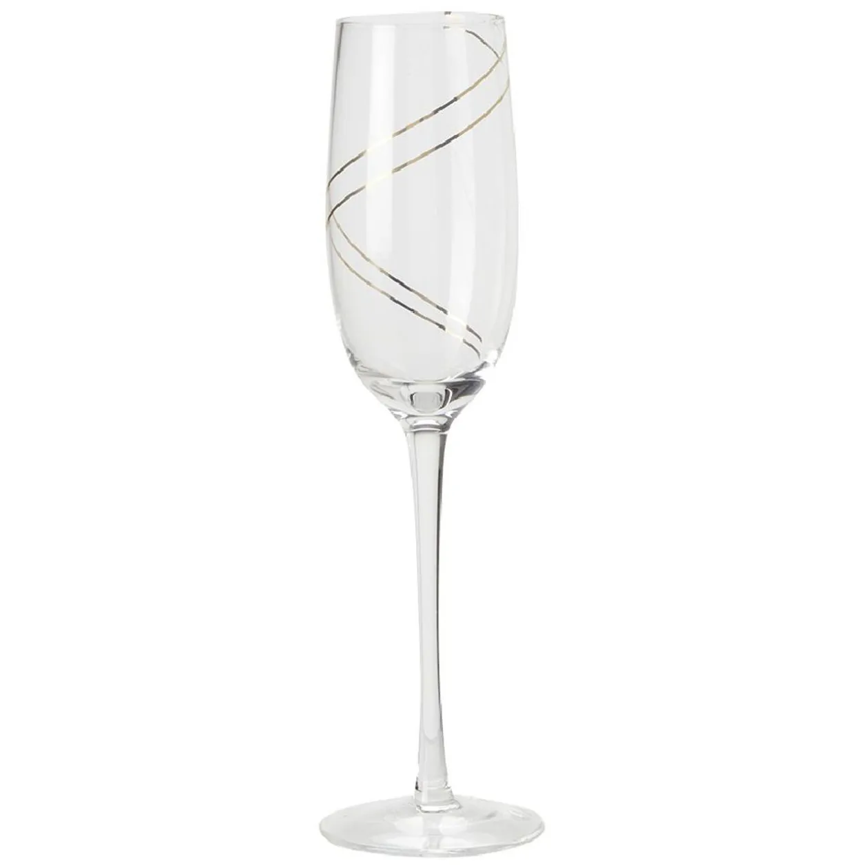 Faites plaisir à vos invités en leur servant à boire dans ces jolies flûtes en verre au décor raffiné en forme de rubans dorés.