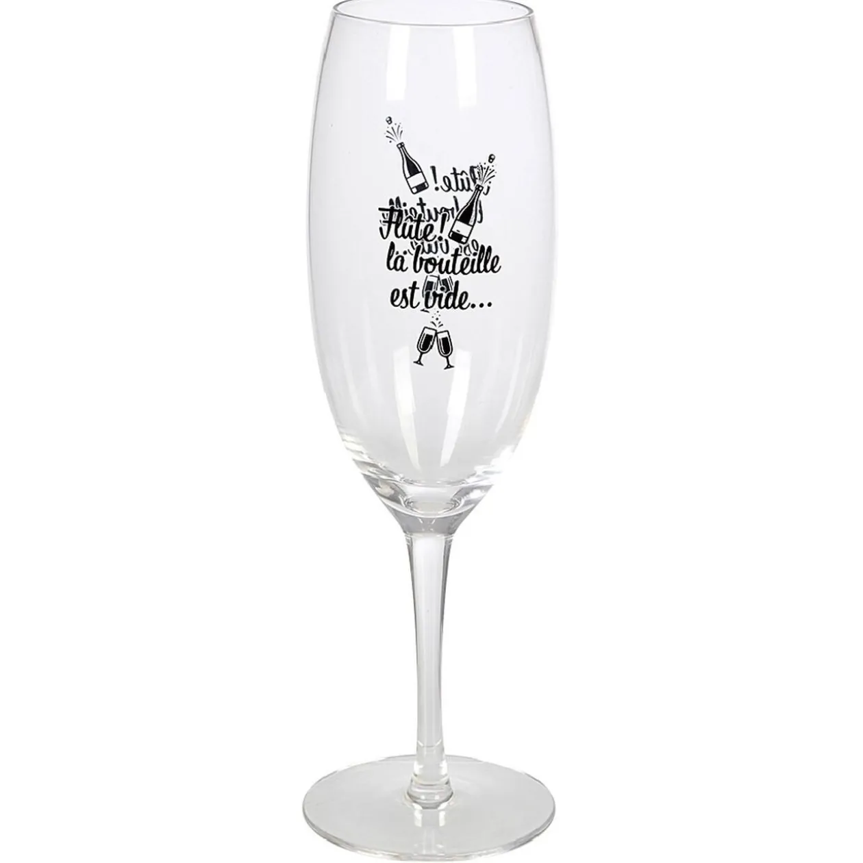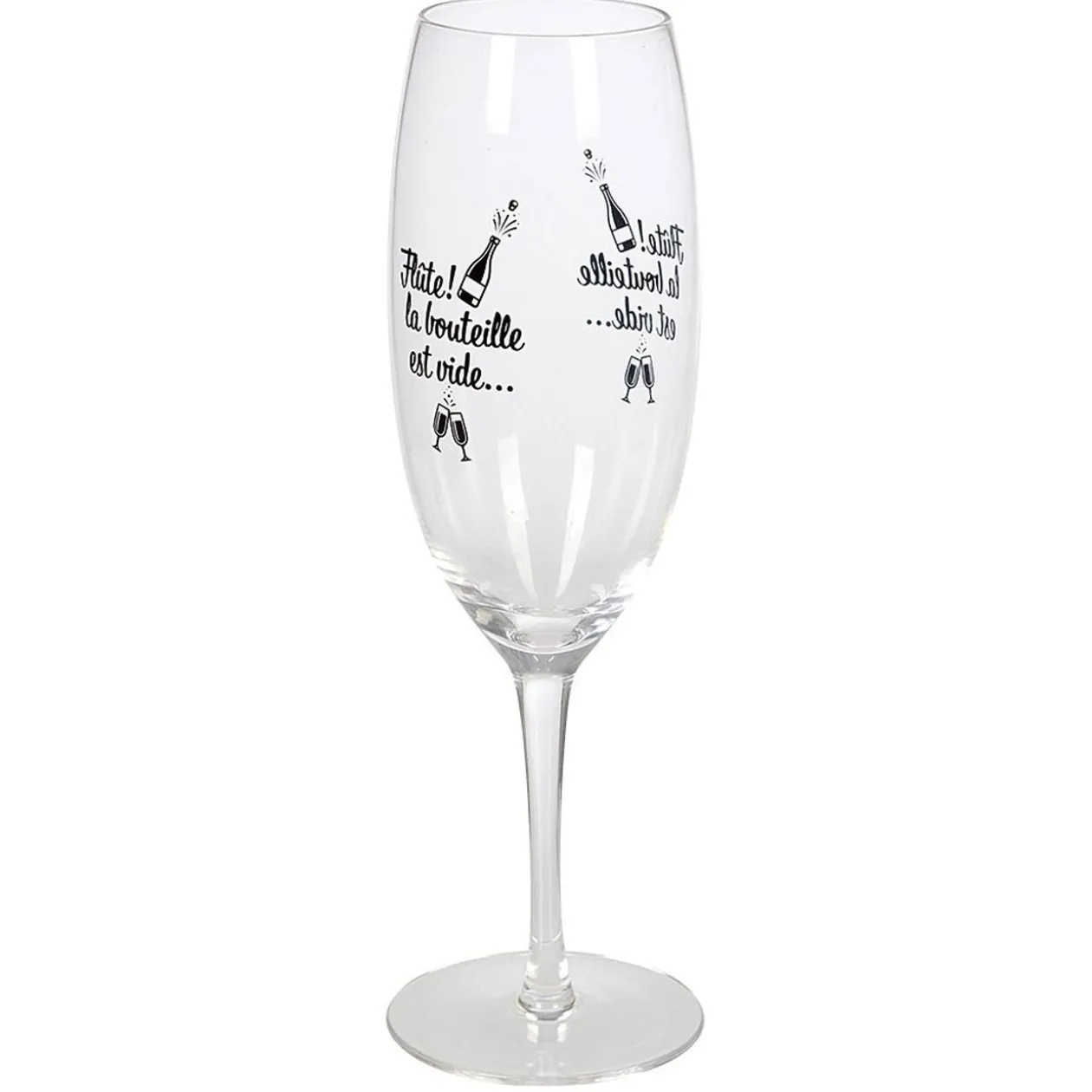 Flûte XL en verre transparent avec inscription noire « Flûte ! La bouteille est vide… ».