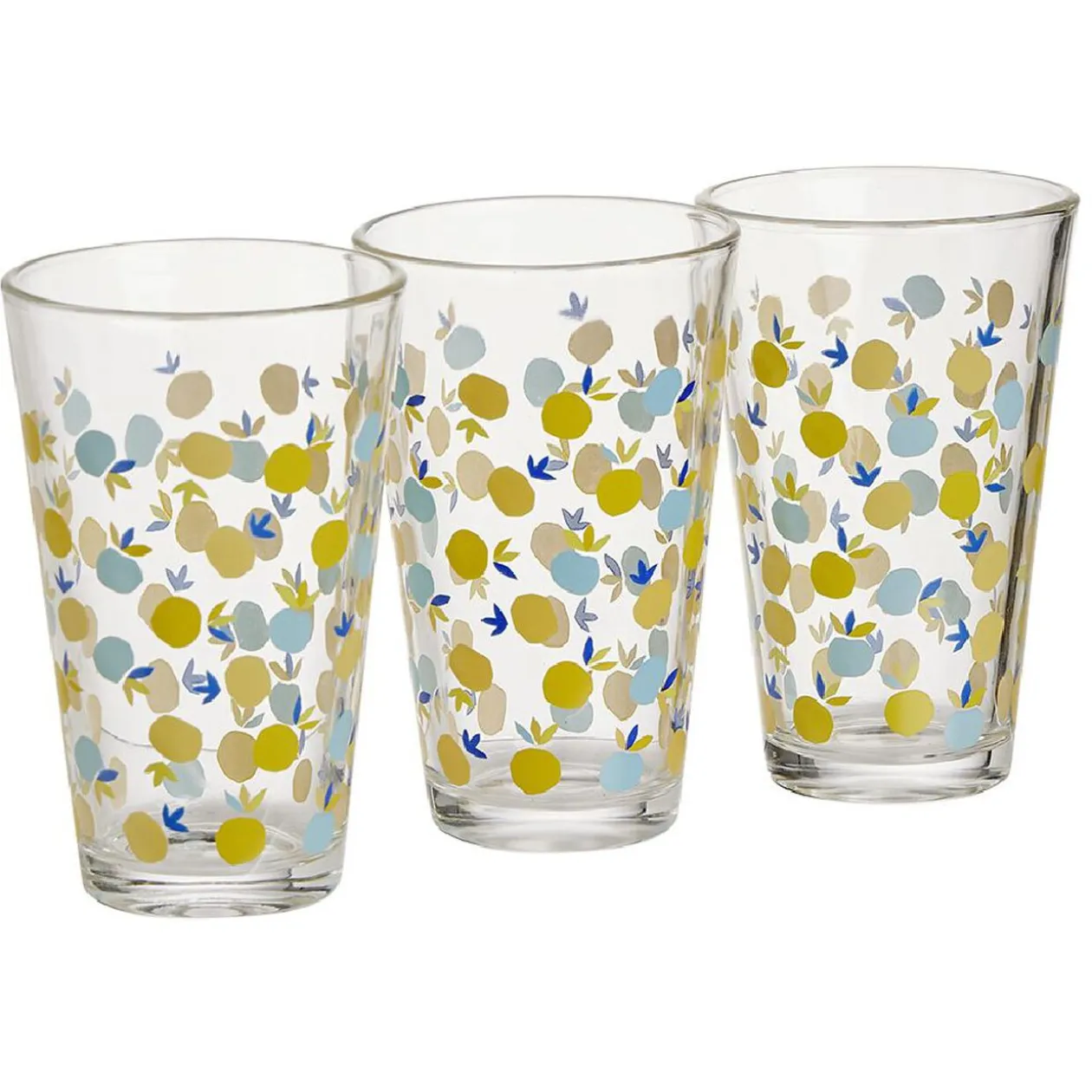 Ce lot de 3 verres transparents avec motifs citrons jaunes et bleus est idéal pour un usage quotidien.