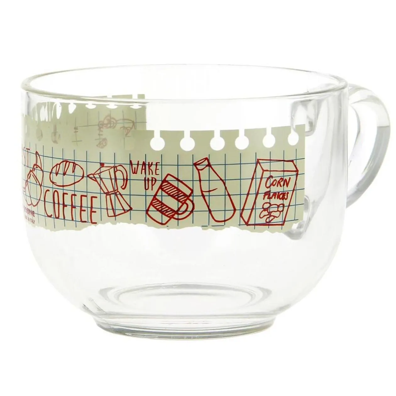 Optez pour ce jumbo en verre transparent avec motif bloc note et dessin de petit-déjeuner. D’une capacité de 70 cl, cette maxi tasse ultra tendance apportera une belle touche vintage à vos petits déjeuners!
