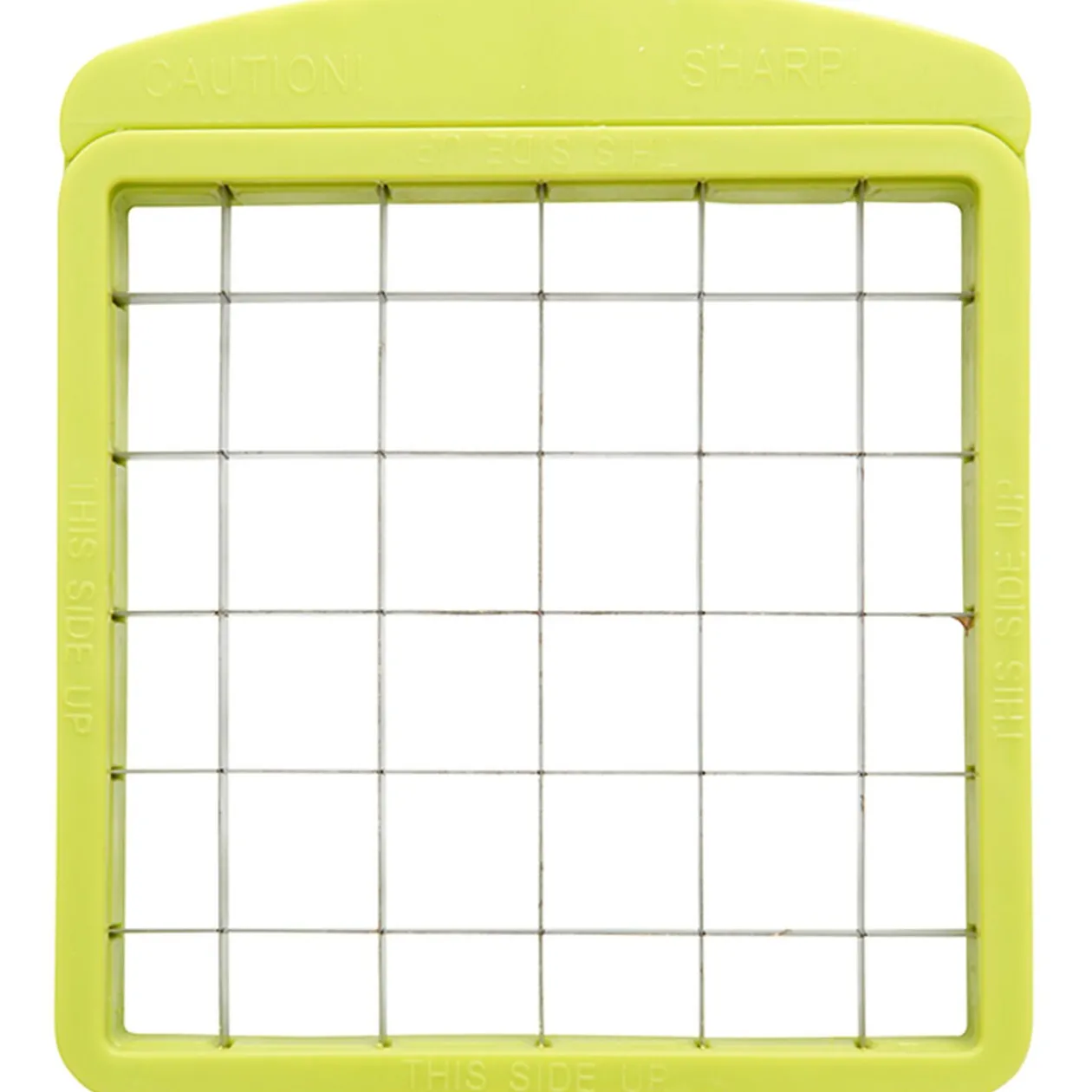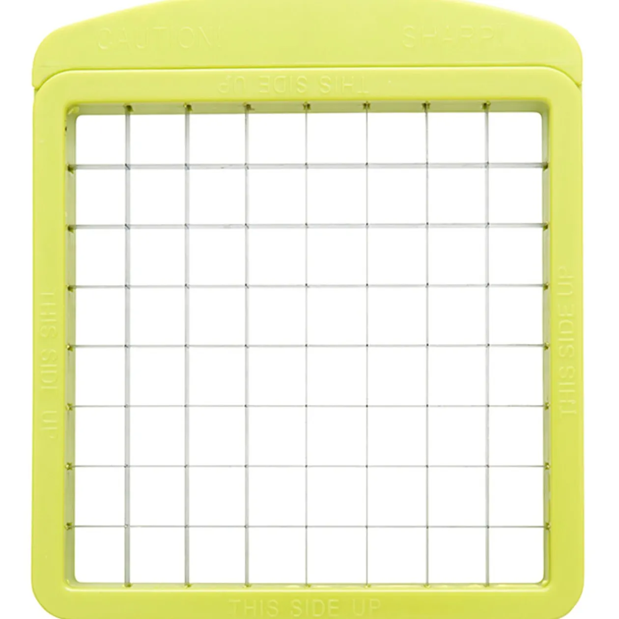 Mandoline et découpe-légumes, 6 coupes disponibles (râper finement, râper grossièrement, râper en julienne, trancher et 2 tailles de cubes). Dim. 17x12x7/9 cm, plastique.