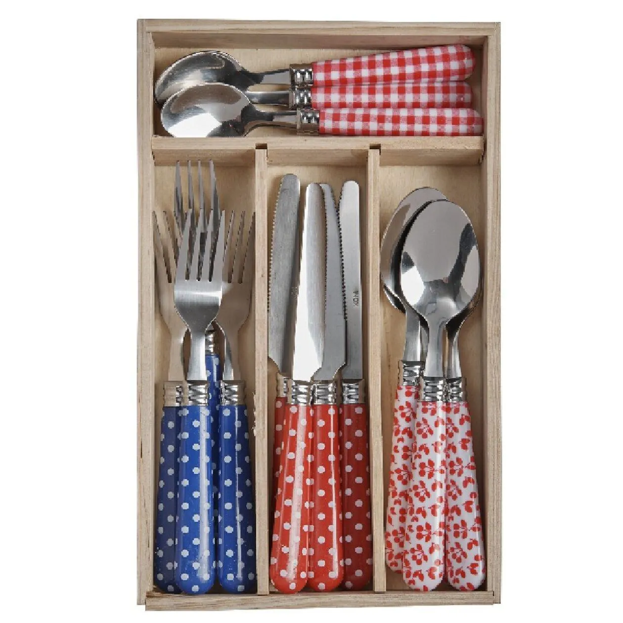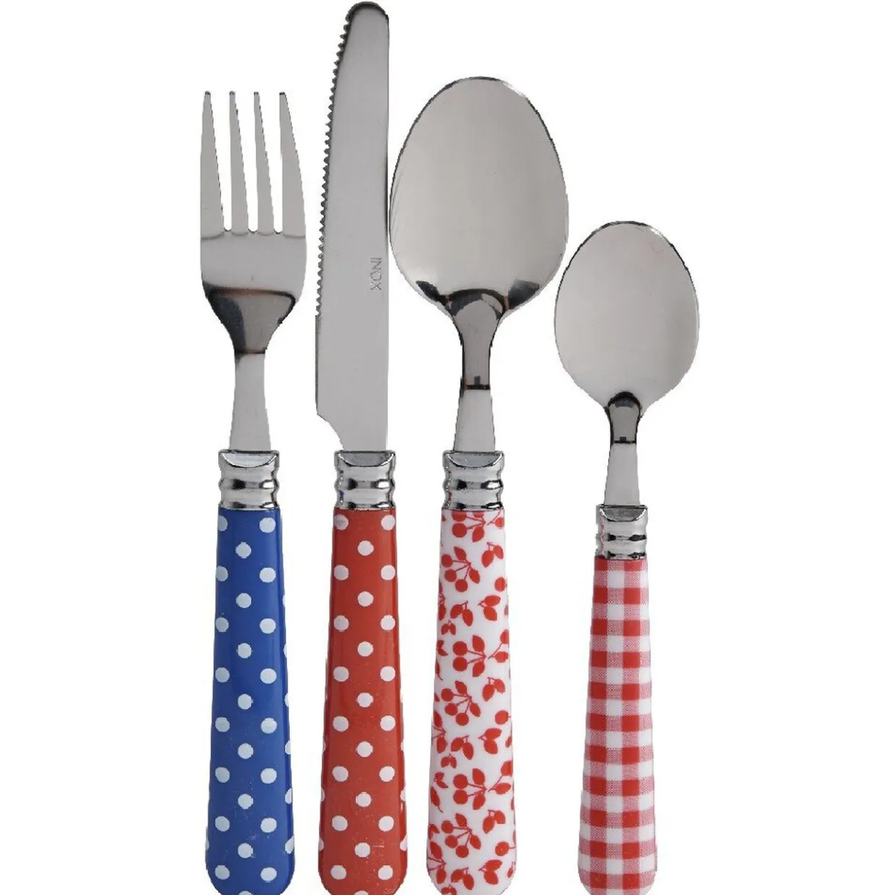 Manche en plastique au design coloré esprit guinguette bleu et rouge, idéal pour tous les jours ou pour une jolie table de réception.