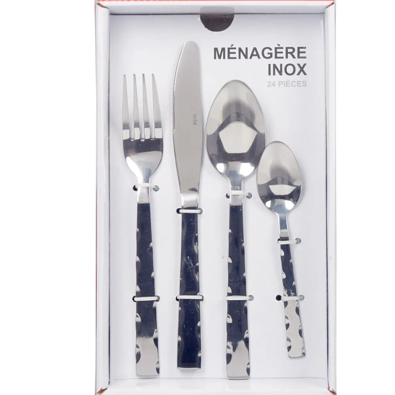 Ménagère 24 pièces en inox, avec décor en relief pour donner un style original et moderne à votre table.