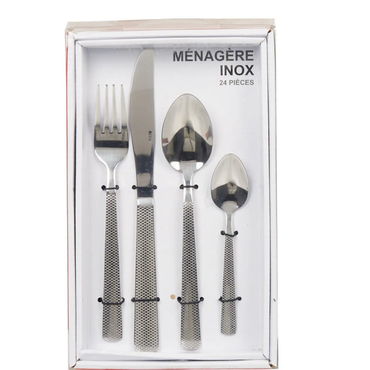 Ménagère 24 pièces avec décor en relief pour donner un style original et moderne à votre table.