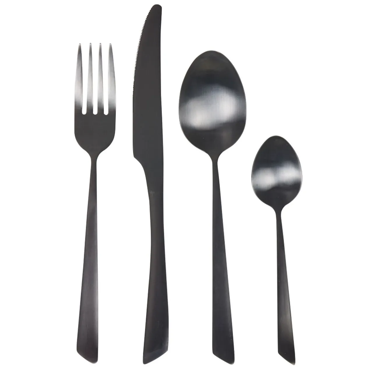 L’originalité a du bon avec cette ménagère de 24 pièces avec 6 fourchettes, 6 couteaux ronds, 6 grandes cuillères et 6 petites cuillères couleur noir.