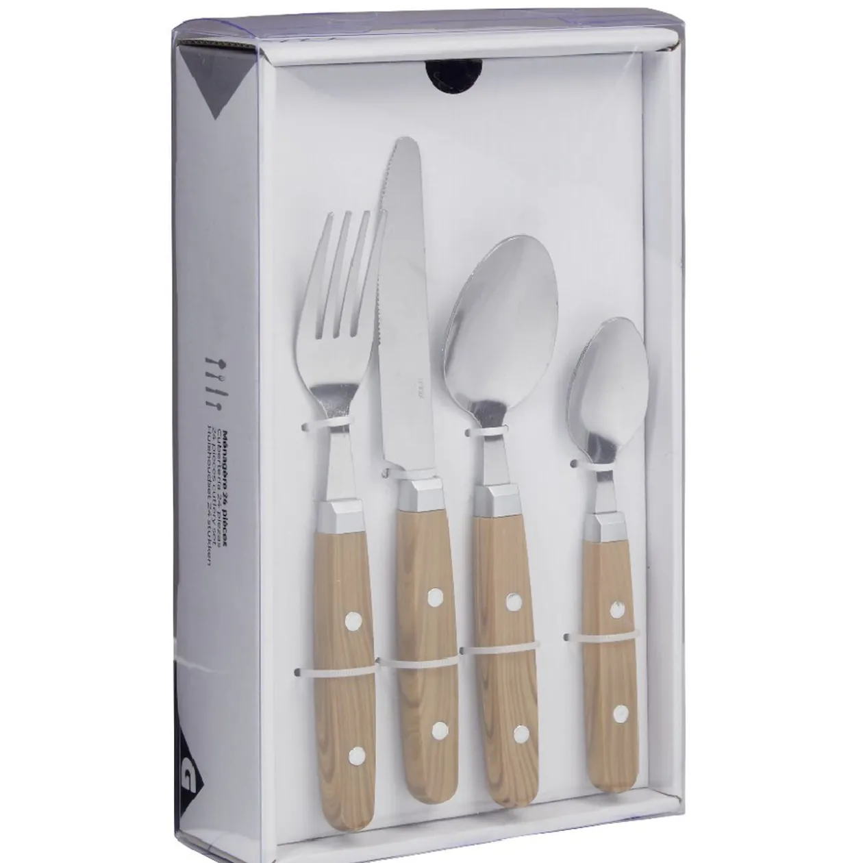 Ménagère bistrot effet bois de 24 pièces.