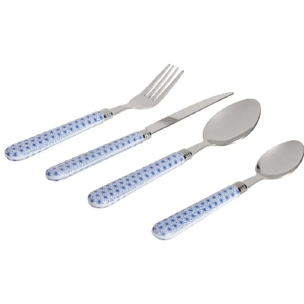 Cette ménagère avec 16 couverts bleus effet mosaïque comprend :