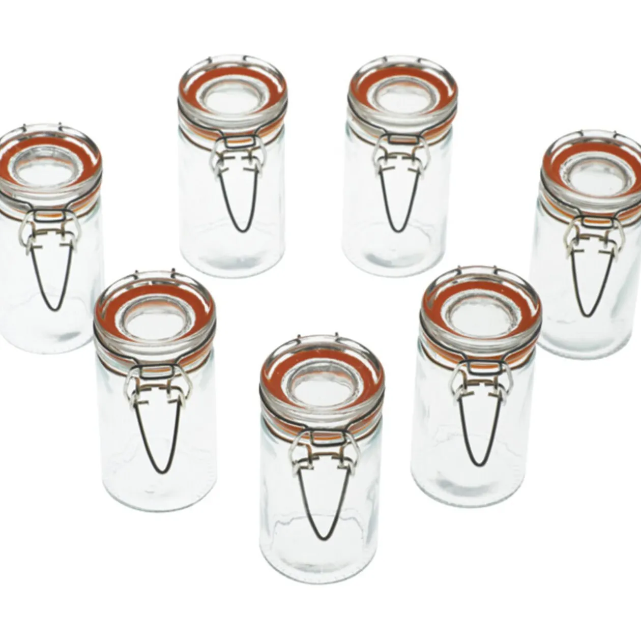 10 mini bocaux, Ø 4,4 cm, h. 8,5 cm, verre.
