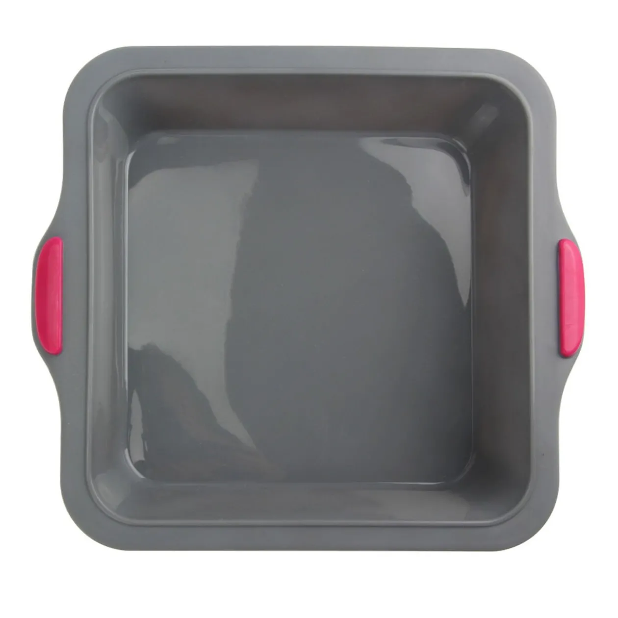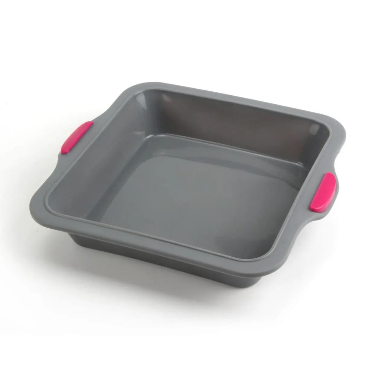 Préparez un délicieux brownie à l’aide de ce moule anti-adhésif en métal gris avec poignées en silicone rouge vous offrant une meilleure prise en main.