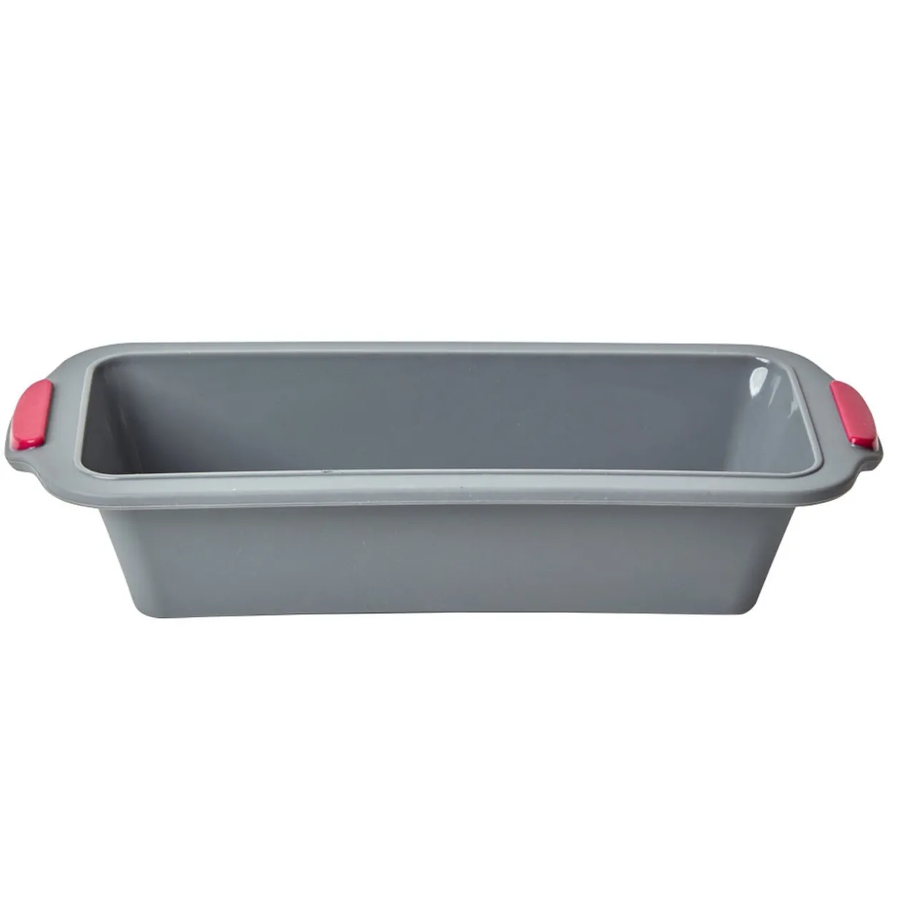 Moule à cake en silicone gris avec une structure métallique pour un meilleur maintien.