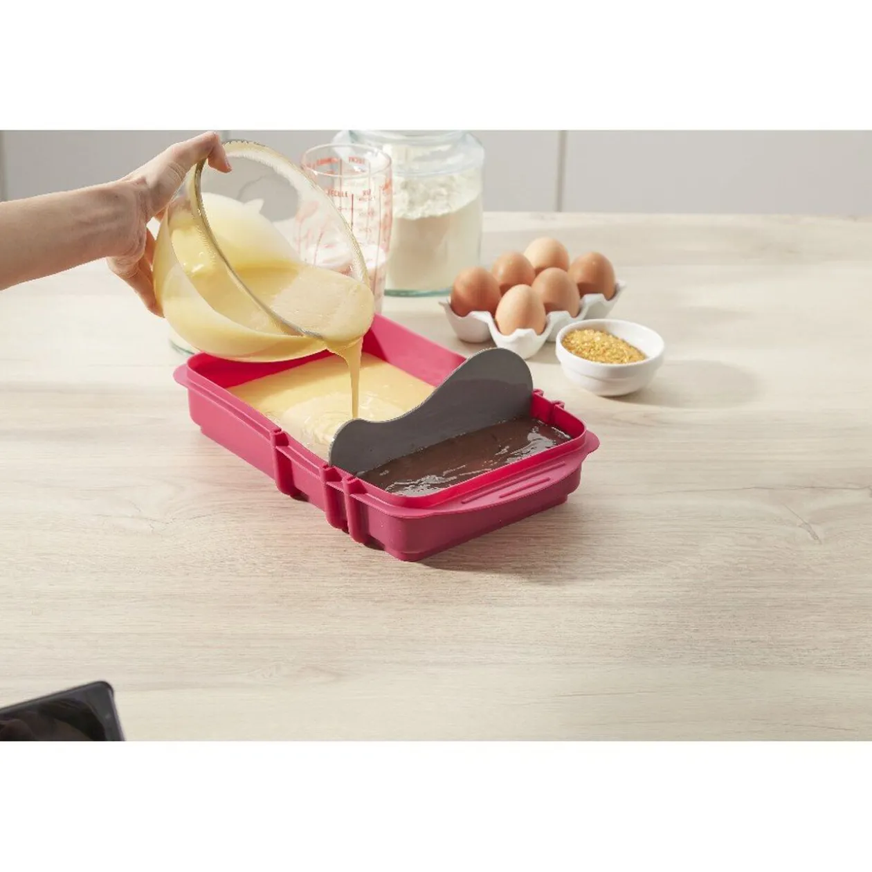 Moule silicone avec séparateur pour réaliser deux préparations simultanément et modifier la contenance de votre plat.