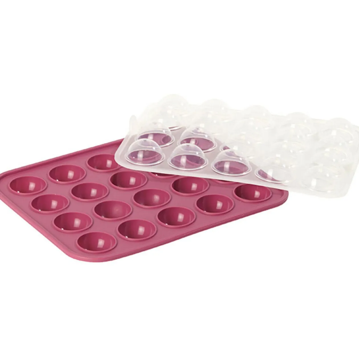 Moule silicone cake pops permettant de réaliser facilement 20 cake pops en une fournée, 40 batonnets inclus.Diff coloris selon arrivage. Dim : 22 x 18 cm