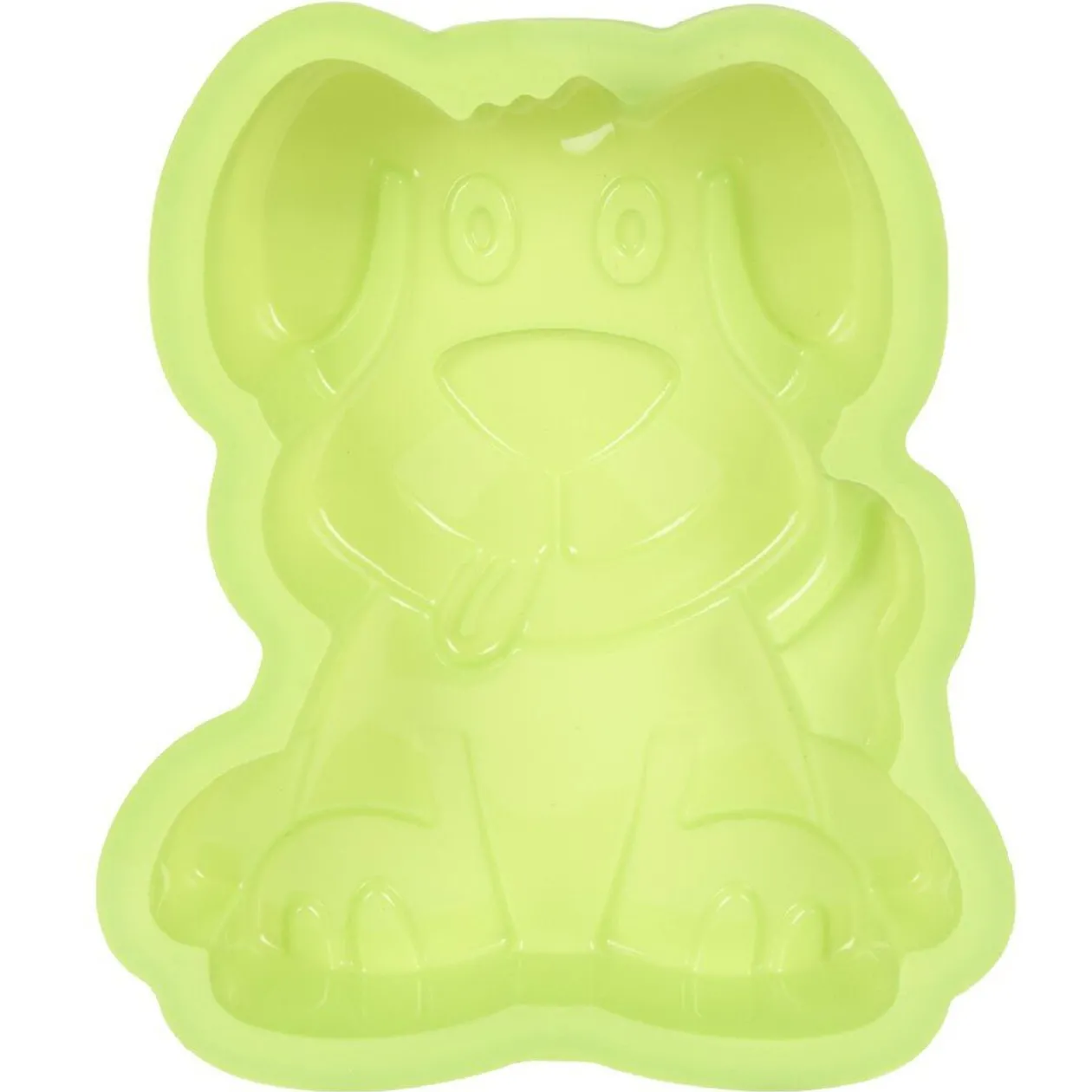Moule silicone à gateauxforme chien vert. Dim : 19,5 x 16,5 x 4,5 cm.
