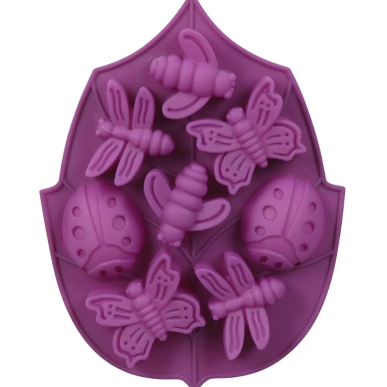 Moule silicone 8 insectes, dim. H2,5×6 cmchacun, cuisson four et Micro-ondes, passe au lave-vaisselle. Diff. coloris, disponibilité selon arrivage.