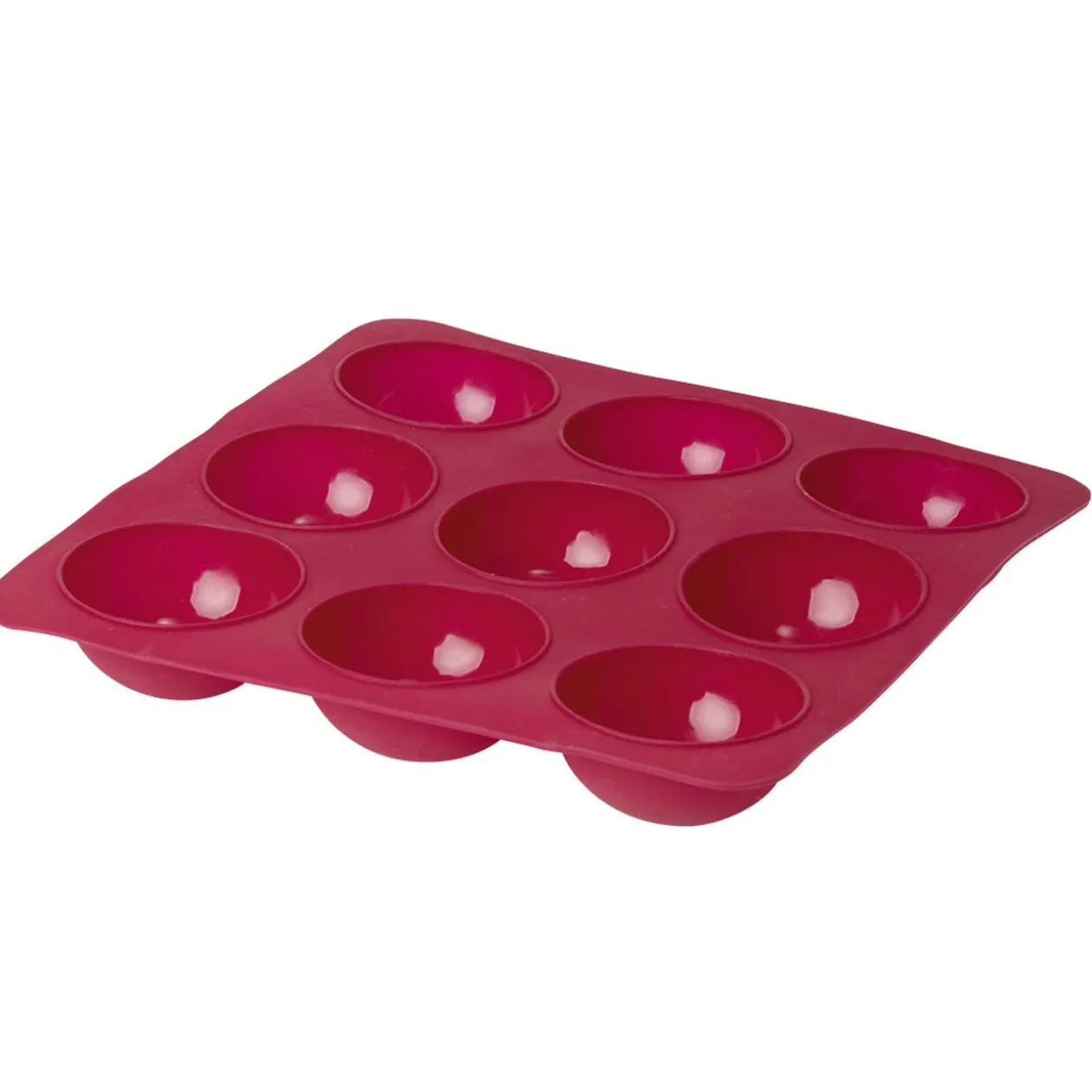 Moule en silicone rose pour réaliser 9 pâtisseries en forme de dômes.
