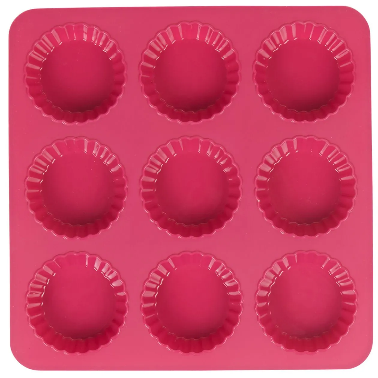 Moule en silicone rose avec 9 emplacements pour tartelettes.