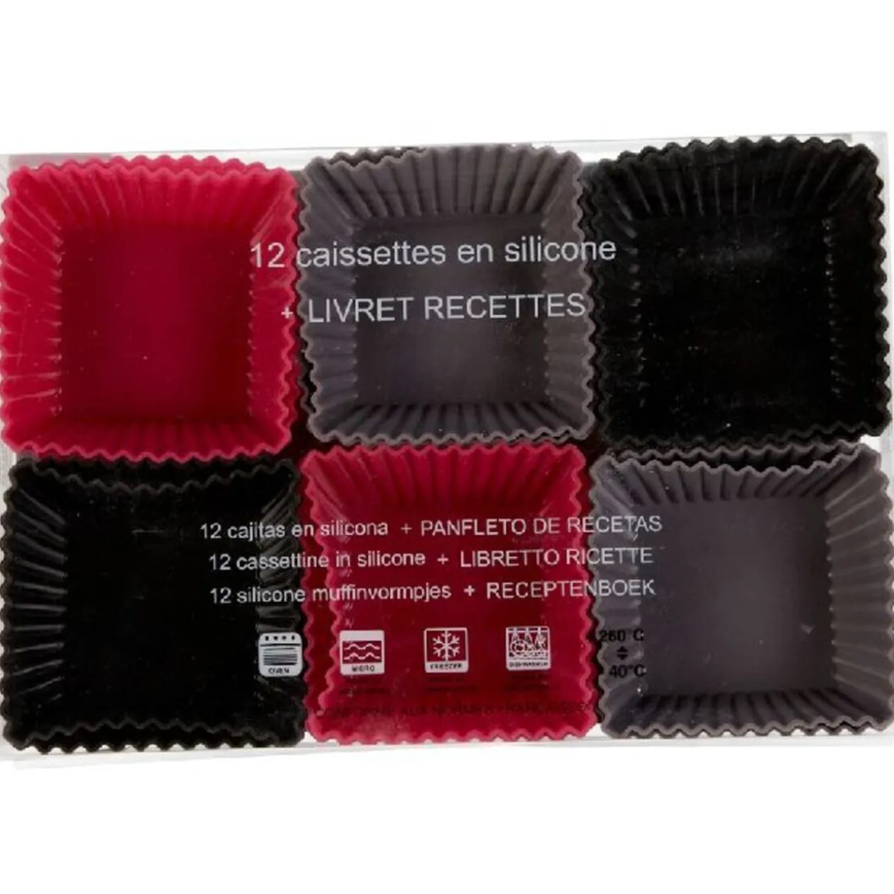 12 moules en silicone, carrés. D’une dimension de 6x6x2,7 cm. Accompagnés d’un livret de recettes.Le silicone assure un démoulage et un entretien faciles. Ses propriétés lui permettent de résister à de hautes températures de cuisson. Vous n’aurez plus besoin de beurrer préalablement vos moules. Ils passent au micro-ondes pour une cuisson plus simple et plus rapide. Ils comprennent un livret avec des recettes simples et rapides aussi bien sucrées que salées.