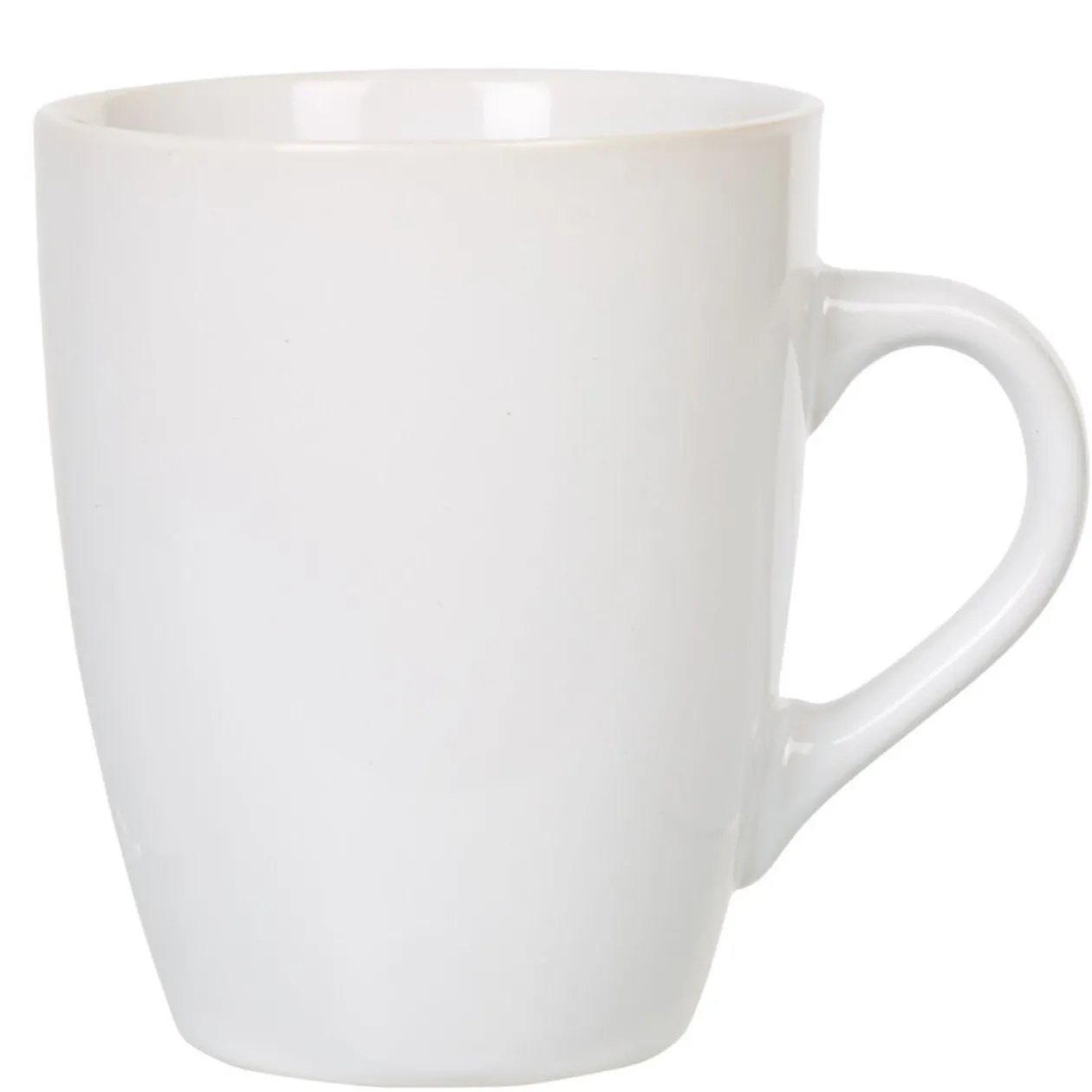 Mug de style basique uni blanc, idéal pour prendre une pause thé ou café.