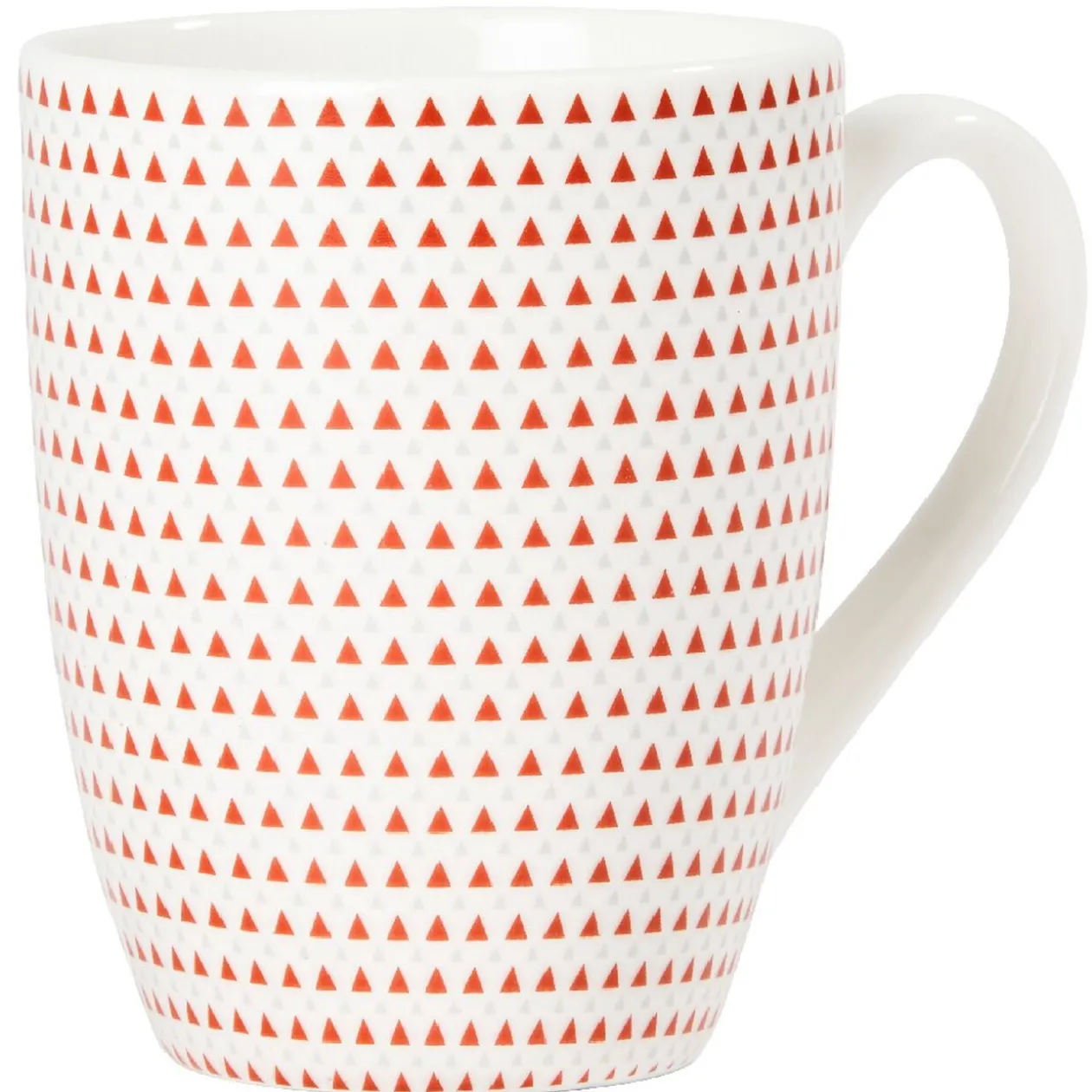 Idéal pour offrir, ce mug blanc au design original avec ses multiples triangles rouges saura plaire à un buveur de thés ou de chocolats chauds.