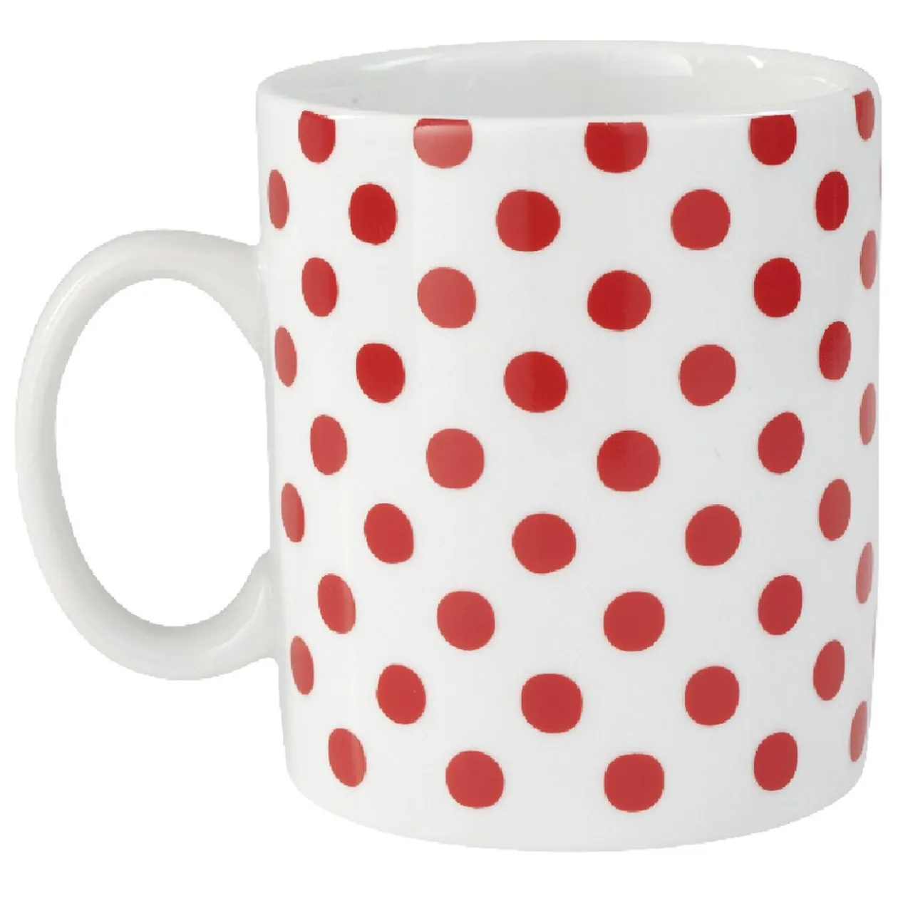 Mug classique blanc motifs pois rouges, d’une contenance de 35 cl.