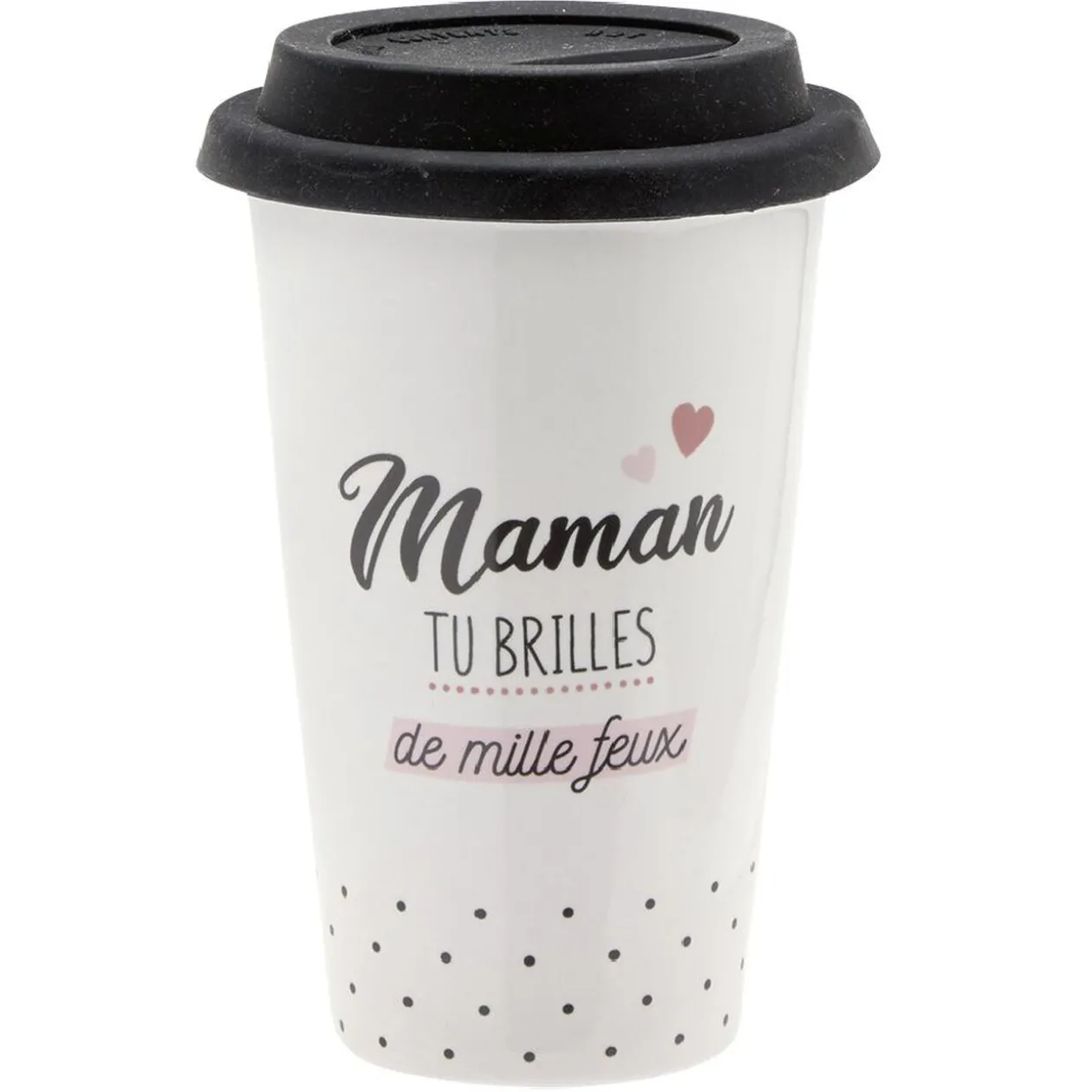 Mug de transport en porcelaine avec inscription « Maman tu brilles de mille feux » à offrir à la plus merveilleuse des mamans.