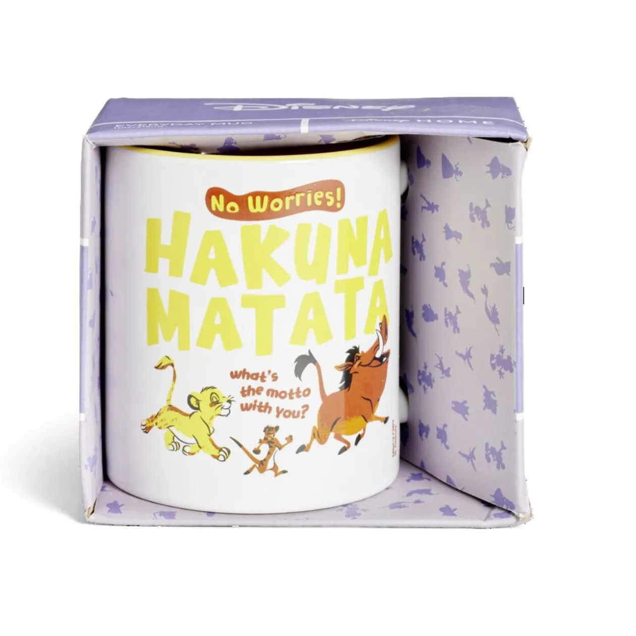 Laissez-vous emporter par l’esprit Disney avec ce mug qui capture la magie et la positivité de l’univers du Roi Lion en mettant en avant la célèbre citation « Hakuna Matata ».