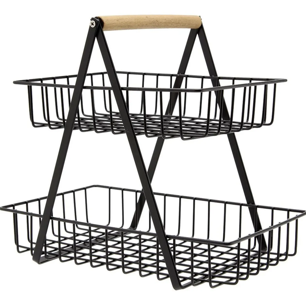 Ce panier à fruits à 2 niveaux de couleur noir avec poignée de couleur naturel apportera une touche originale et industrielle à votre table.