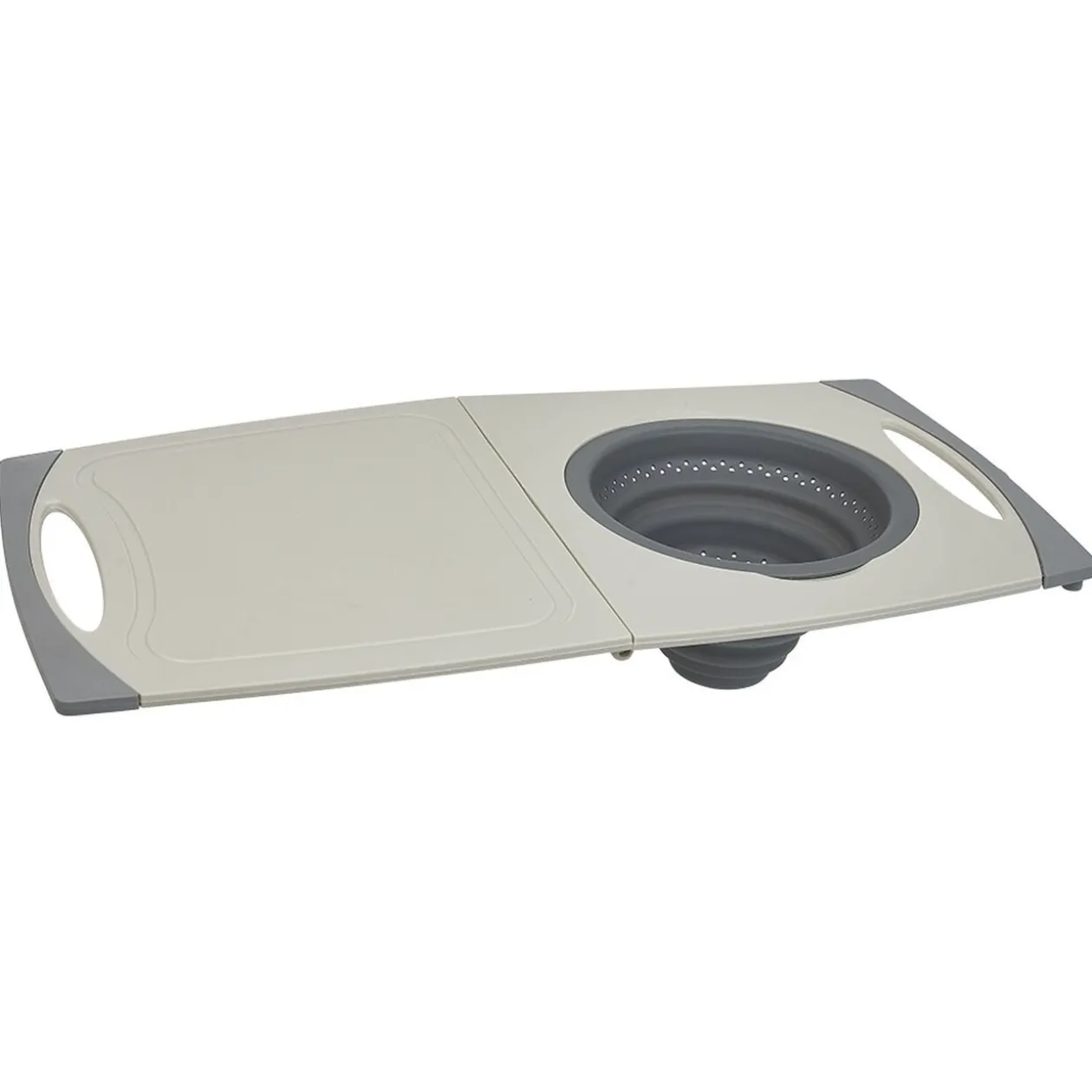 Cette planche 2 en 1 vous permet d’un côté de découper vos aliments et de l’autre de les égoutter grâce à la passoire rétractable en silicone.
