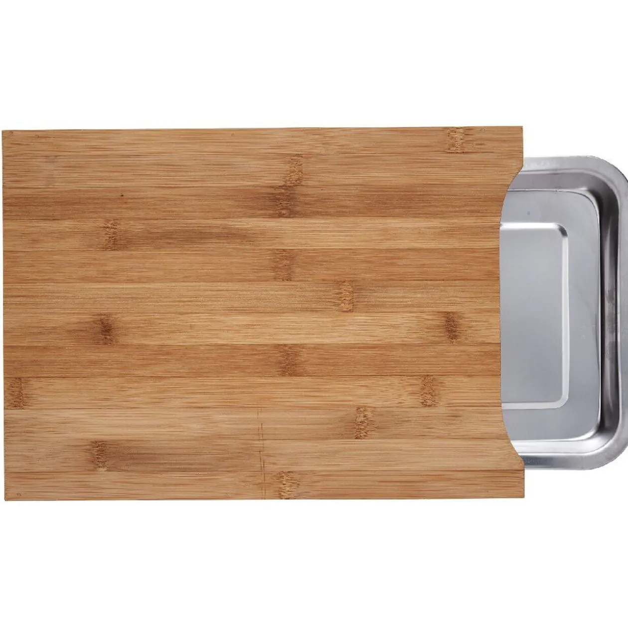 Le plateau est à insérer sous la planche, ce qui facilite la récupération des légumes coupés et épluchés.