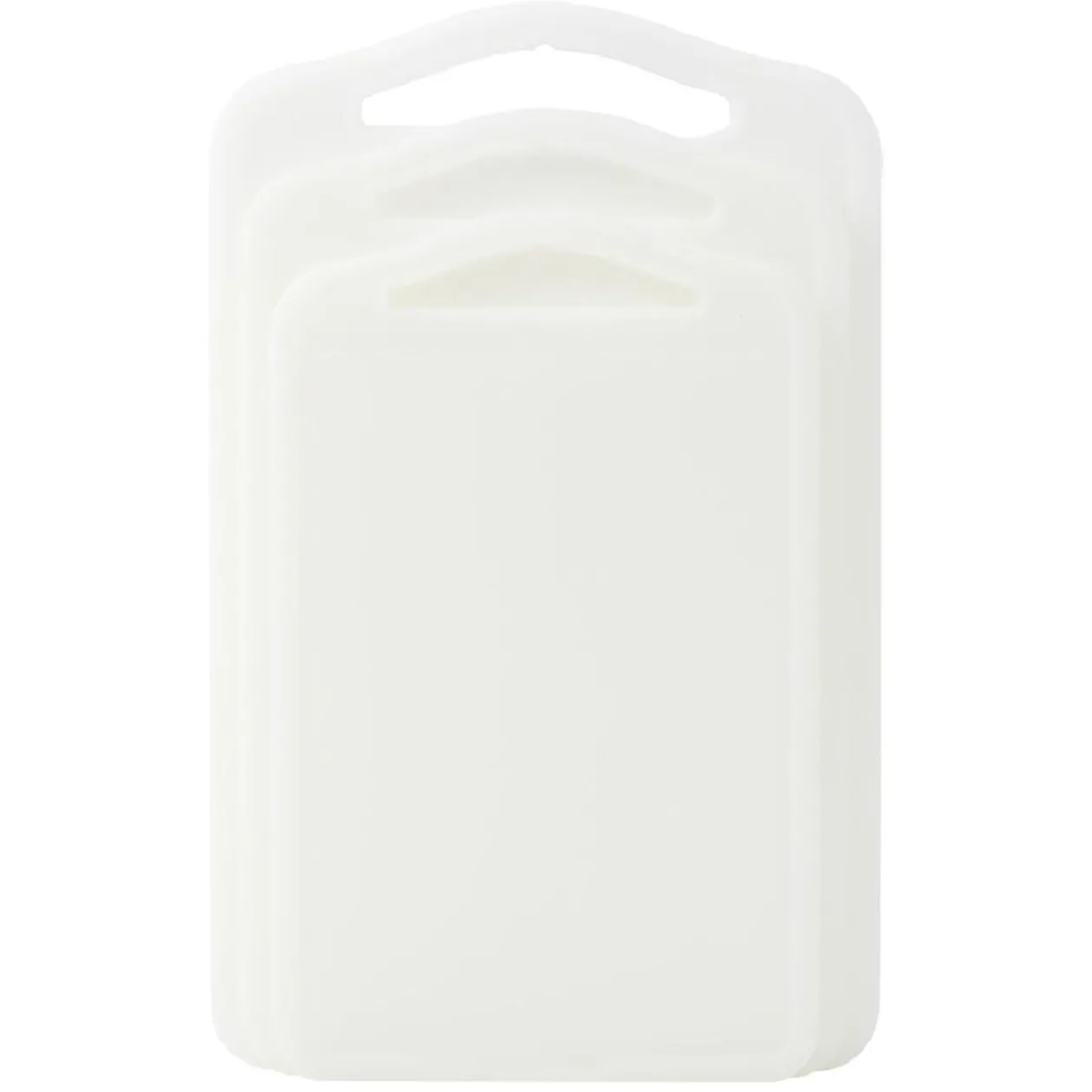 Soyez équipé pour la découpe de vos aliments avec ce lot de 3 planches de tailles différentes en polypropylène blanc.