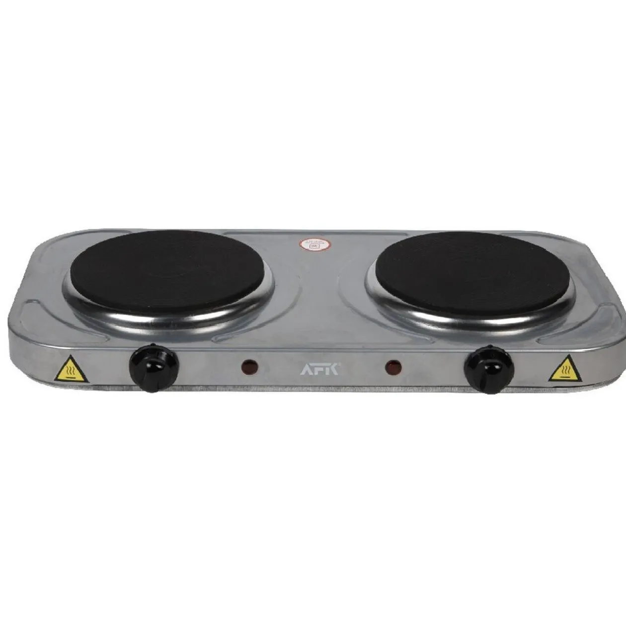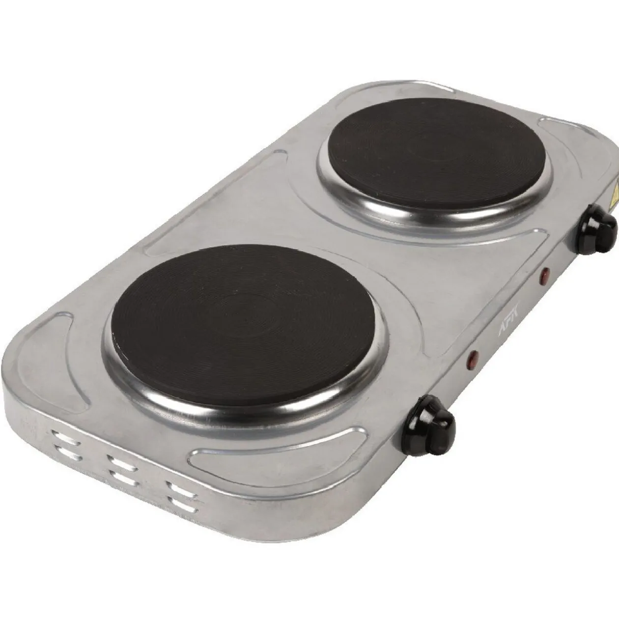 Plaque électrique 2 feux, dim. 48x23x6 cm, acier. Se branche sur secteur..