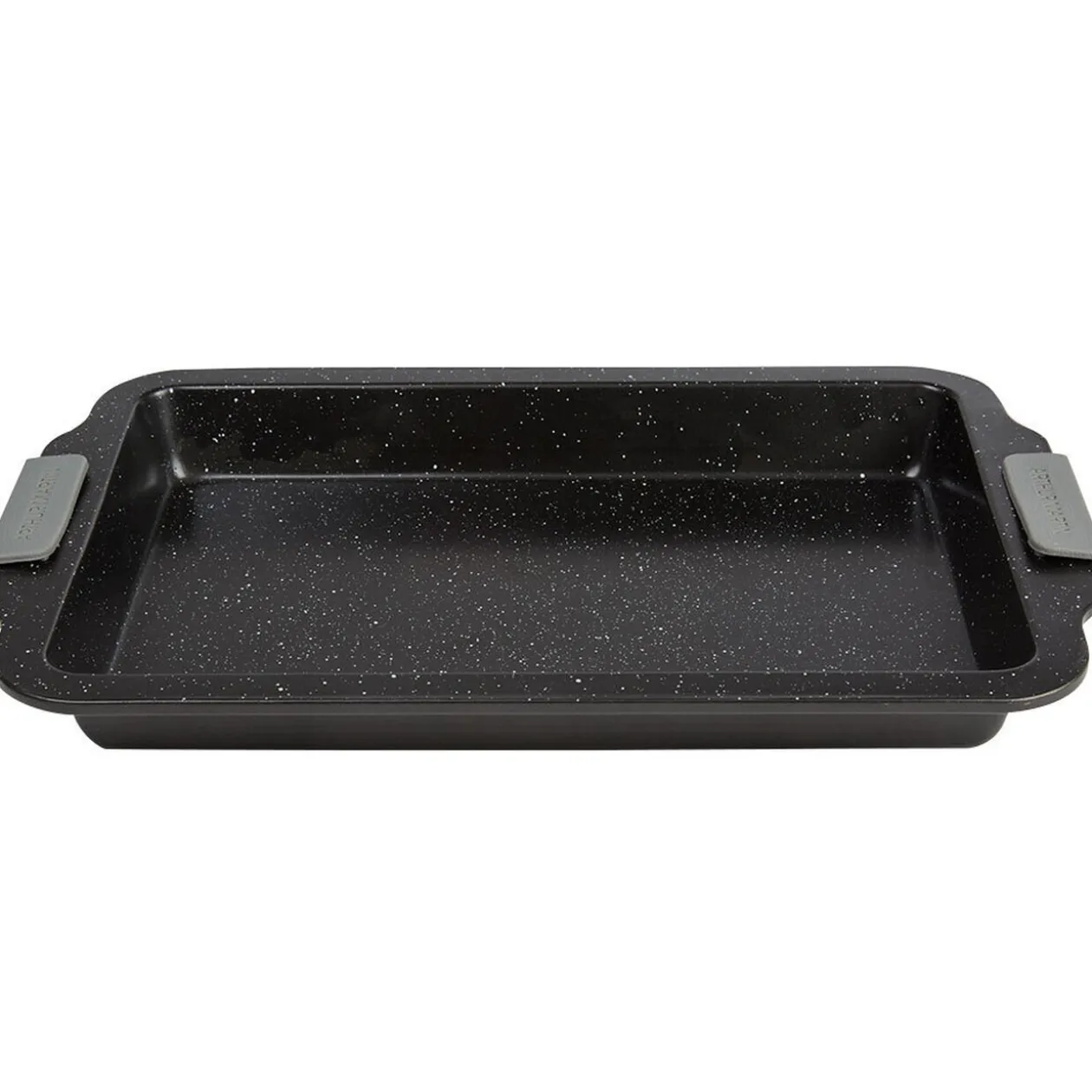 Plat à four Arthur Martin en aluminium effet pierre avec poignées en silicone.