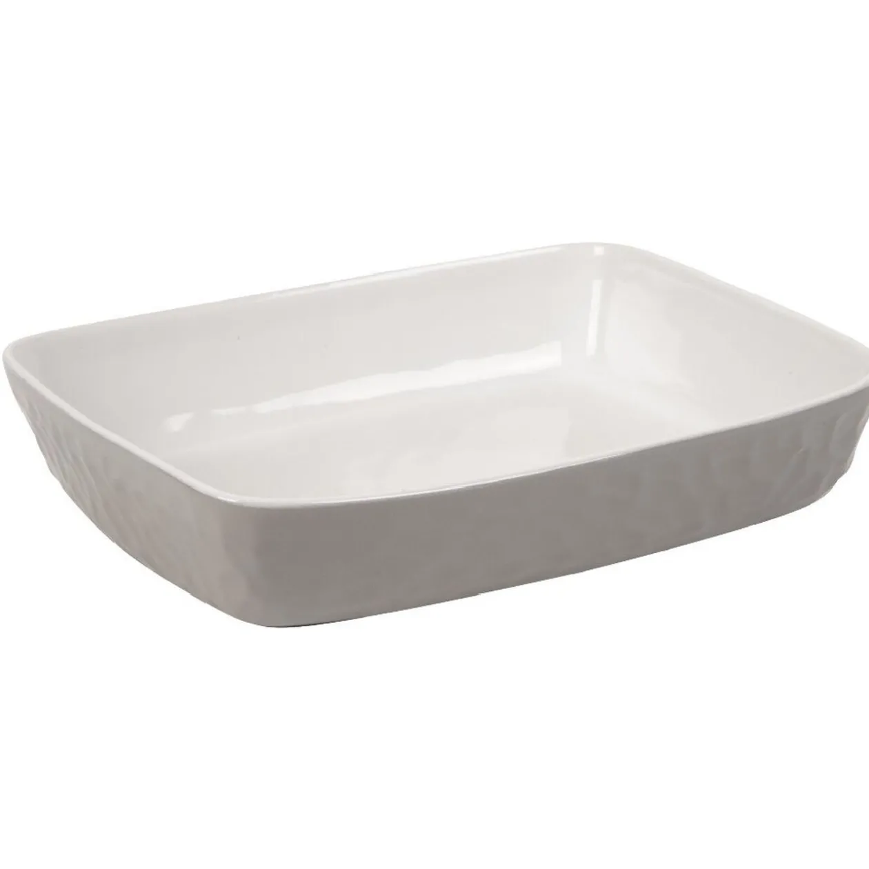 Plat à four martelé gris, intérieur blanc, dim. 31,5x26x6 cm, grès.