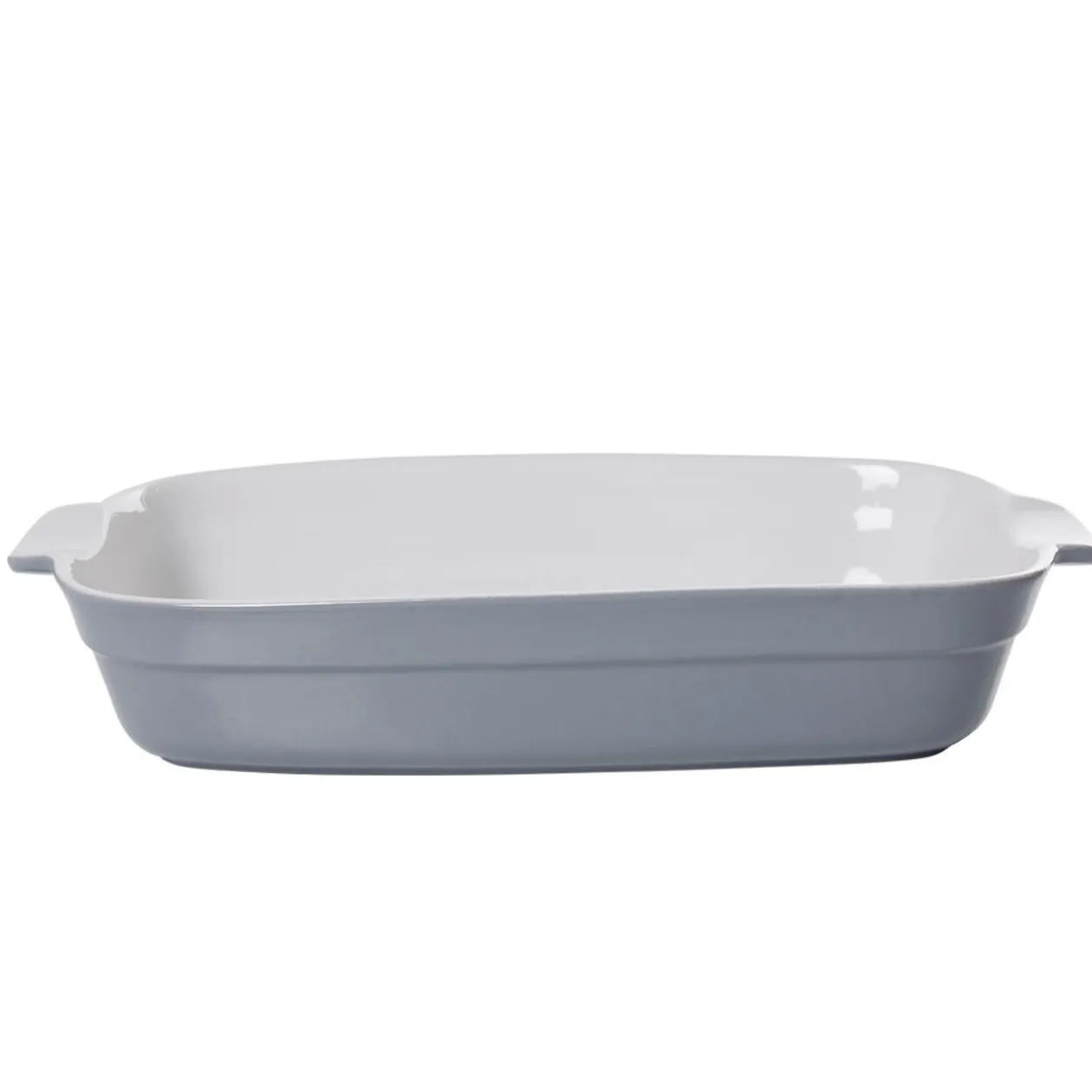 Plat à four rectangulaire grand format de couleur gris à l’extérieur et blanc à l’intérieur.