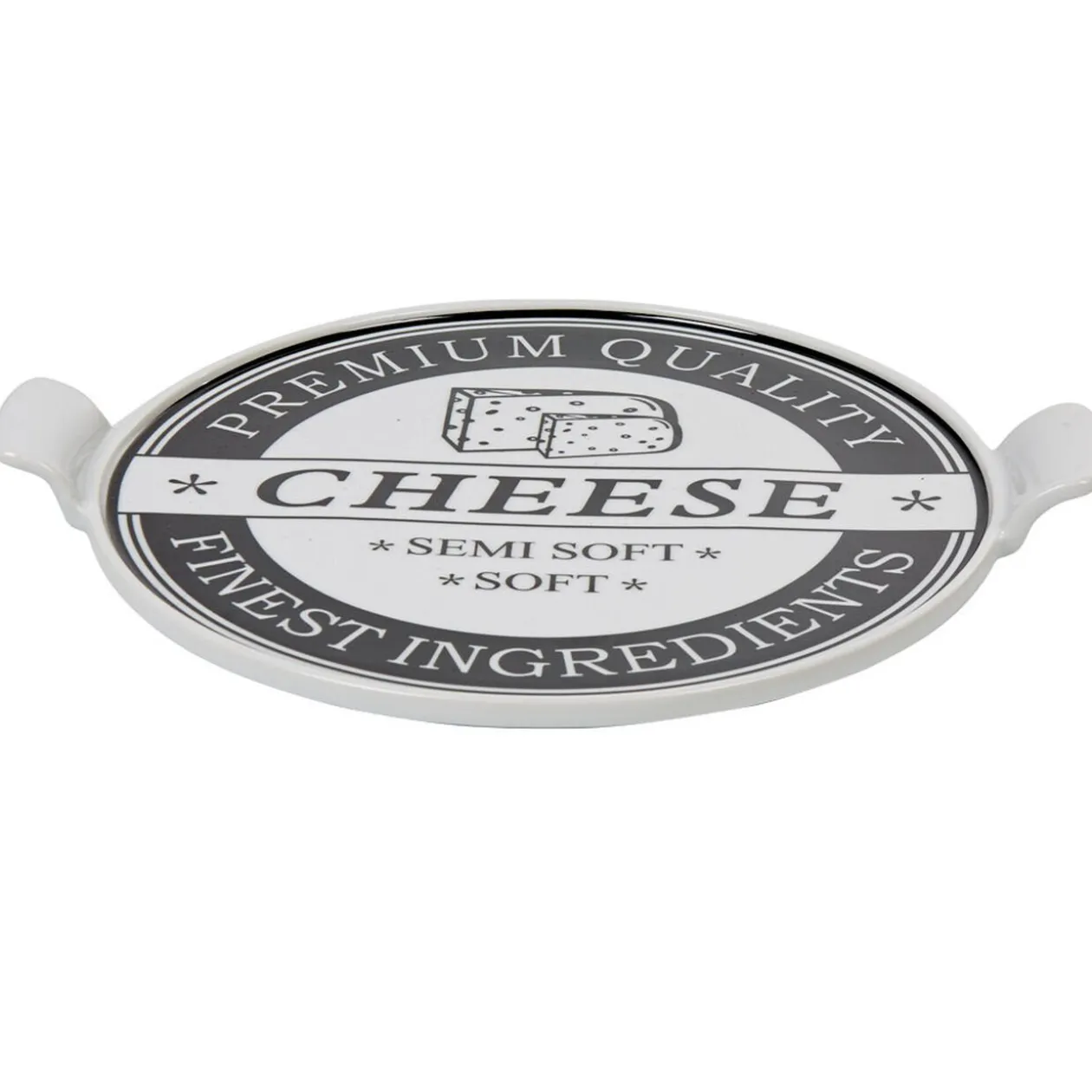 Plateau en porcelaine design Cheese noir et blanc, idéal pour la présentation et le service des fromages.