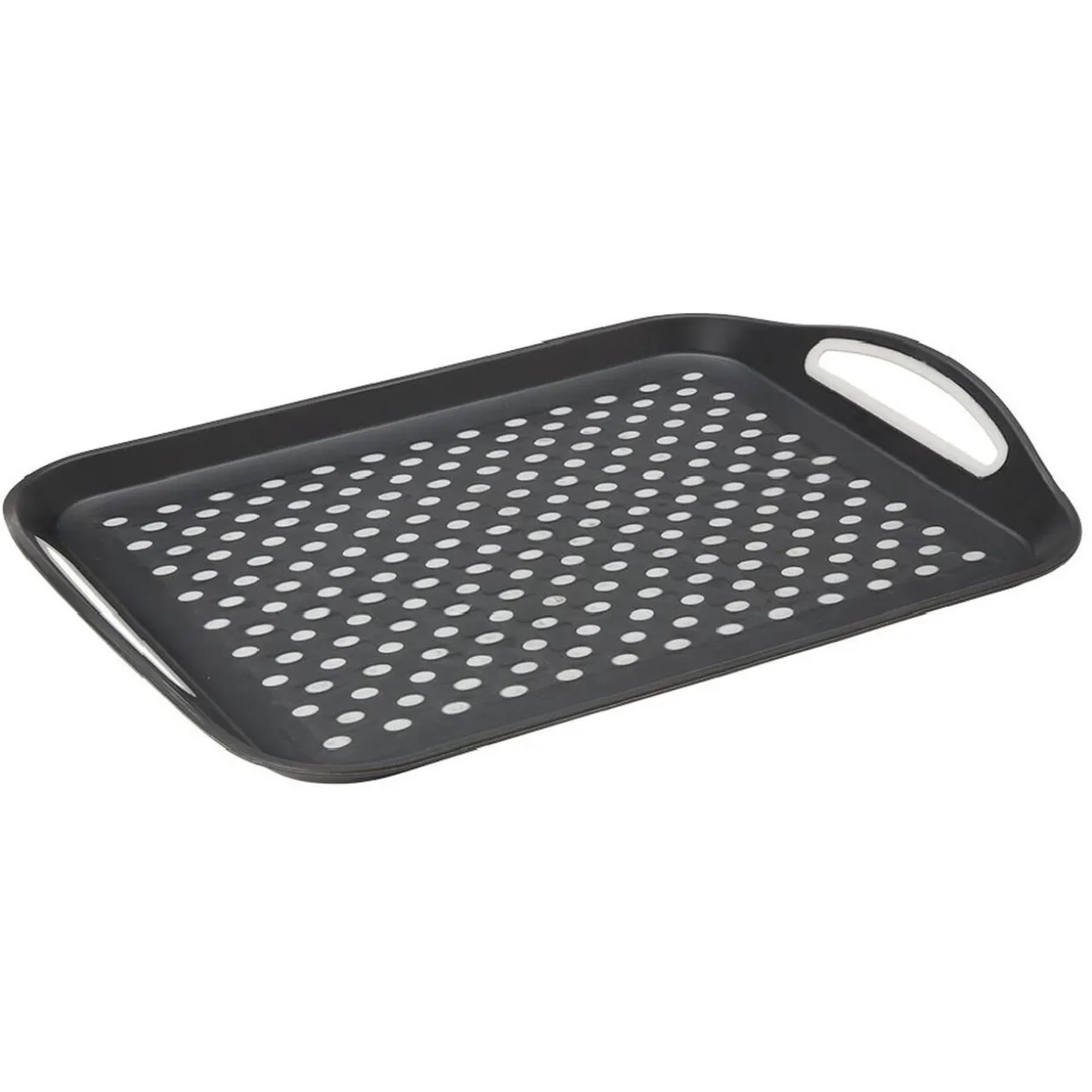 Plateau antidérapant gris à pois blancs, parfait pour le service ou pour profiter d’un petit-déjeuner au lit sans risque de renverser quelque chose.