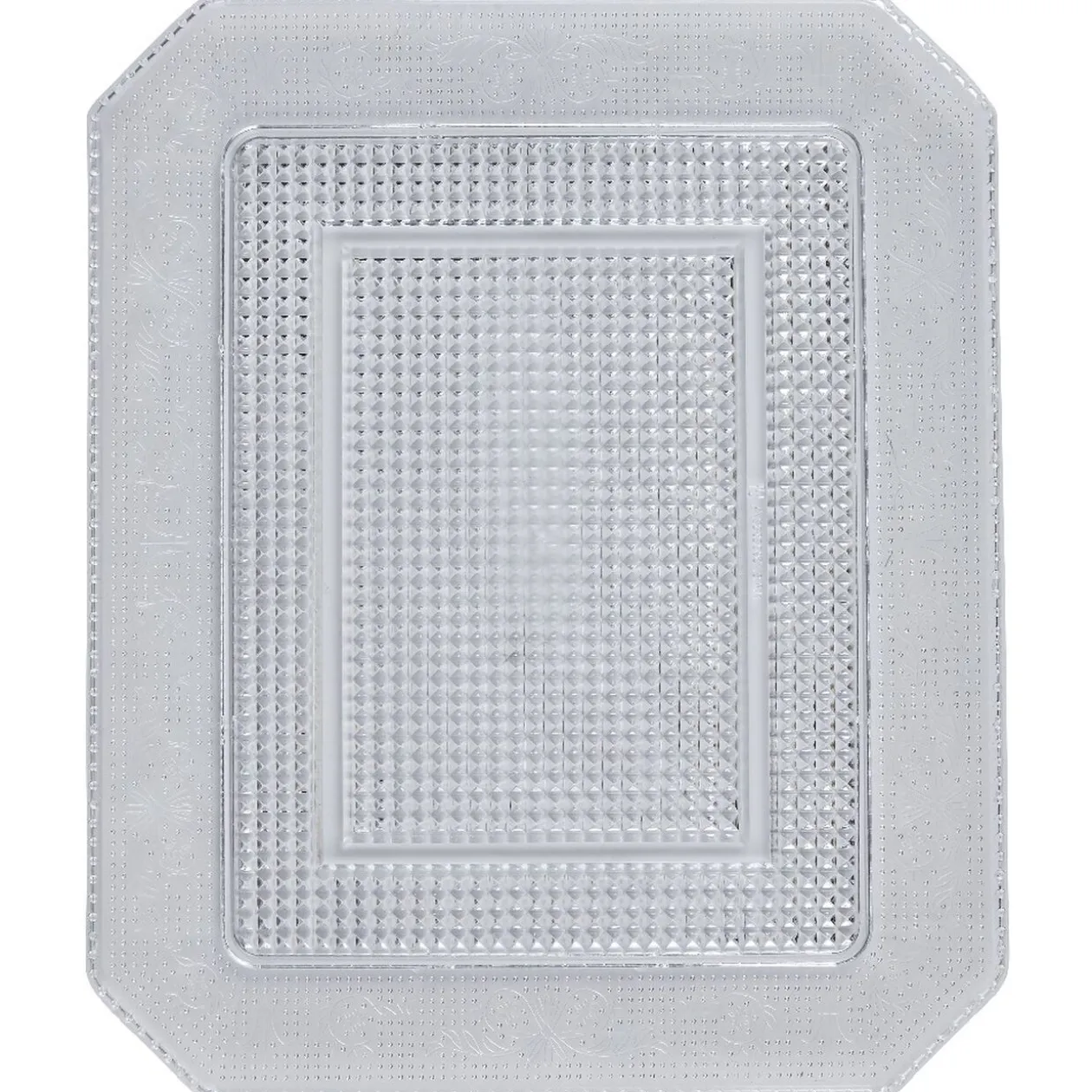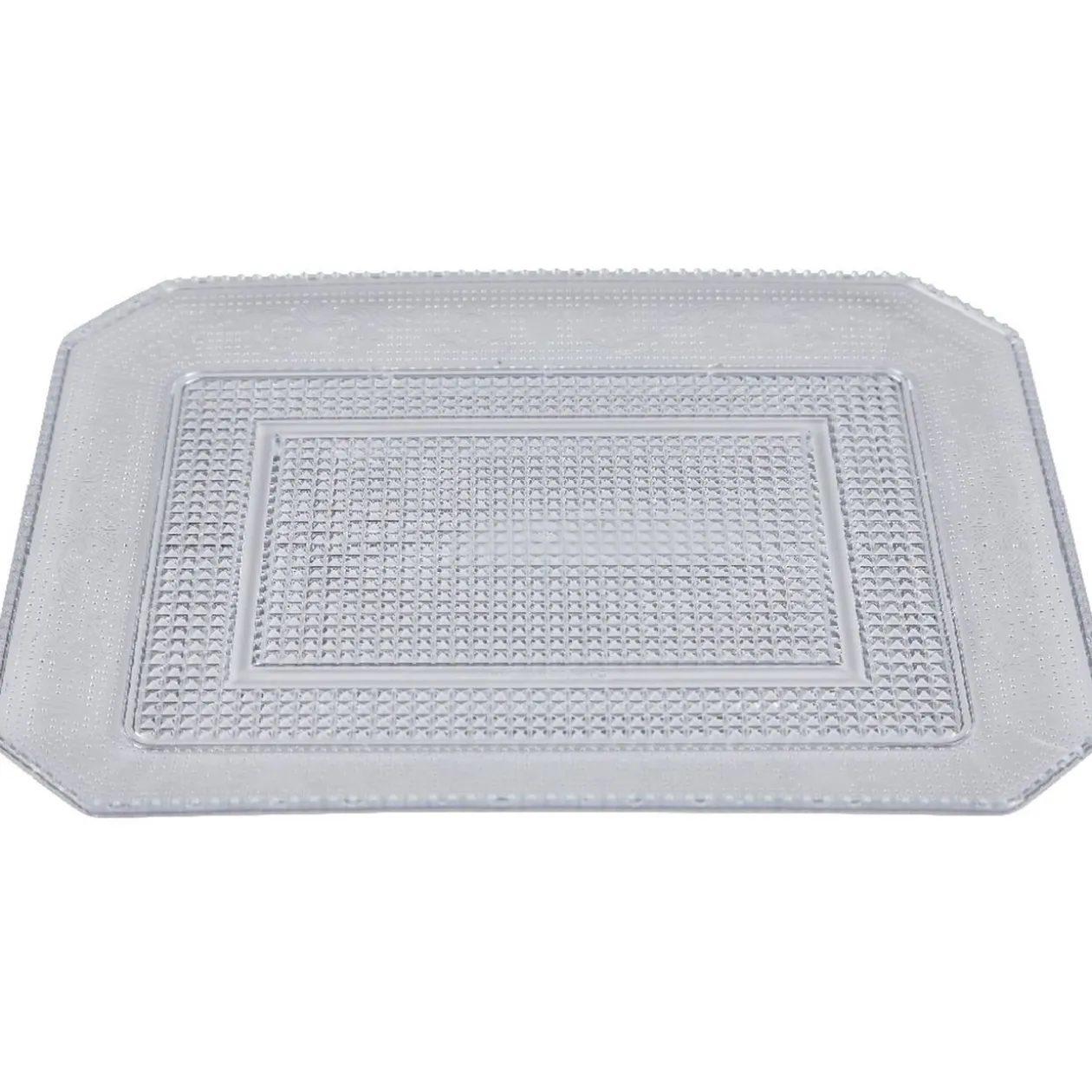Plateau rectangulaire transparent au design luxueux.