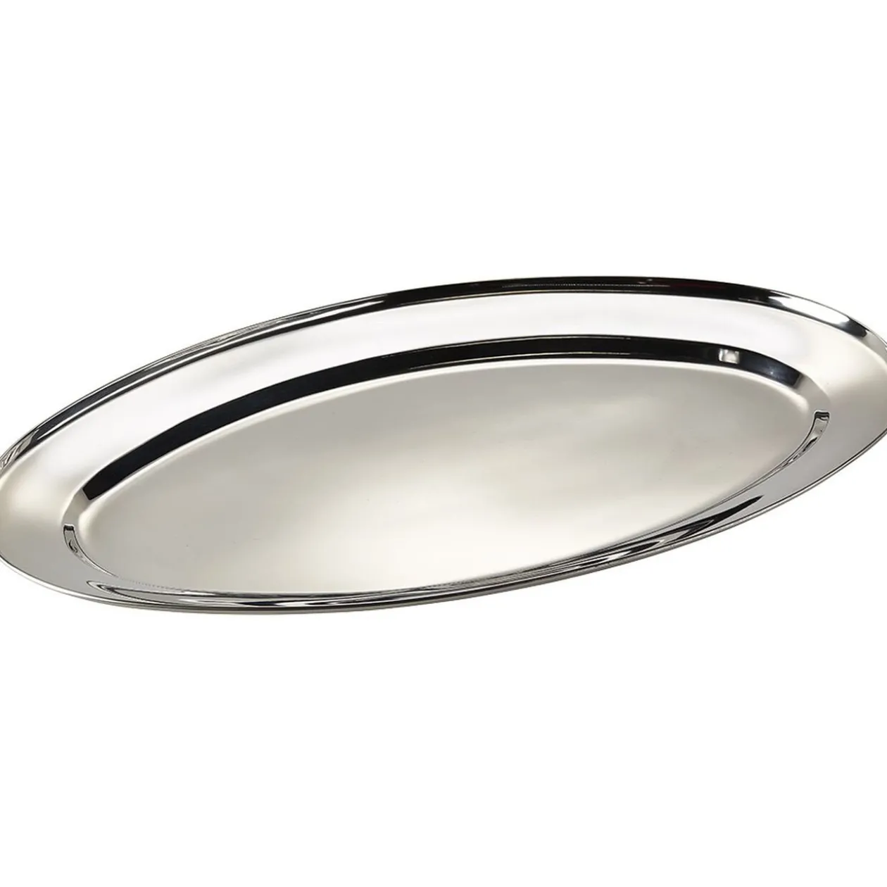 Si vous aimez les services de table élégants, craquez pour ce plateau argenté en inox. Sa forme ovale vous permettra de servir toutes sortes de plats. Il est doté d’une finition lustrée et ses bords incurvés assureront une bonne prise en main. Ce plateau convient à toutes les occasions.