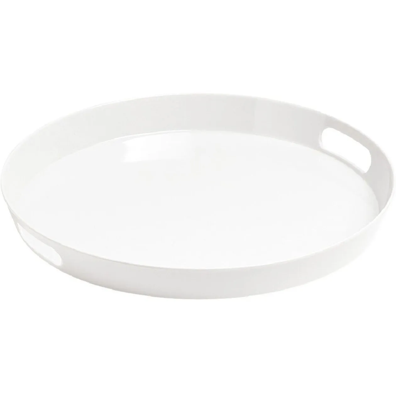 Plateau rond en plastique mélamine uni blanc,un design épuré idéal pour le service au quotidien.