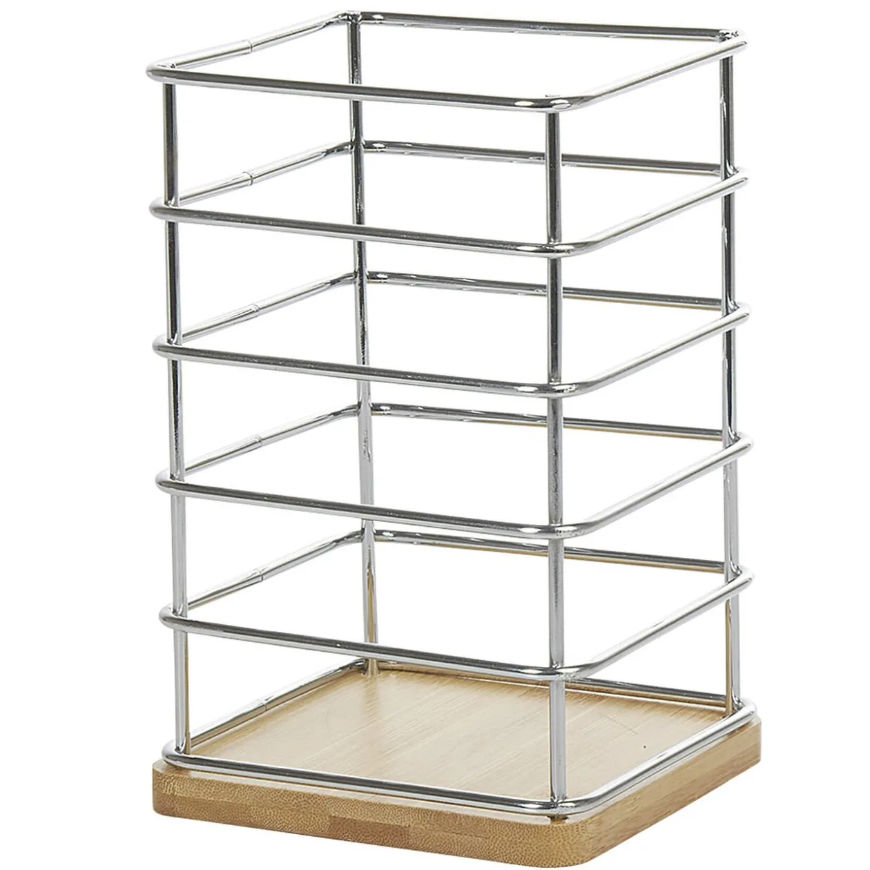 Porte ustensiles de cuisine en métal avec socle en bambou