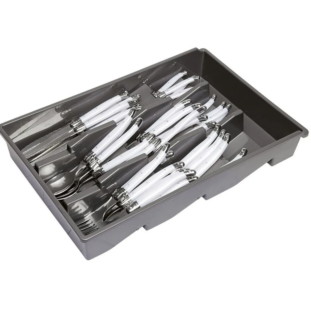 Optez pour ce bac de rangement malin à superposition des couverts pour un gain de place maximisé.