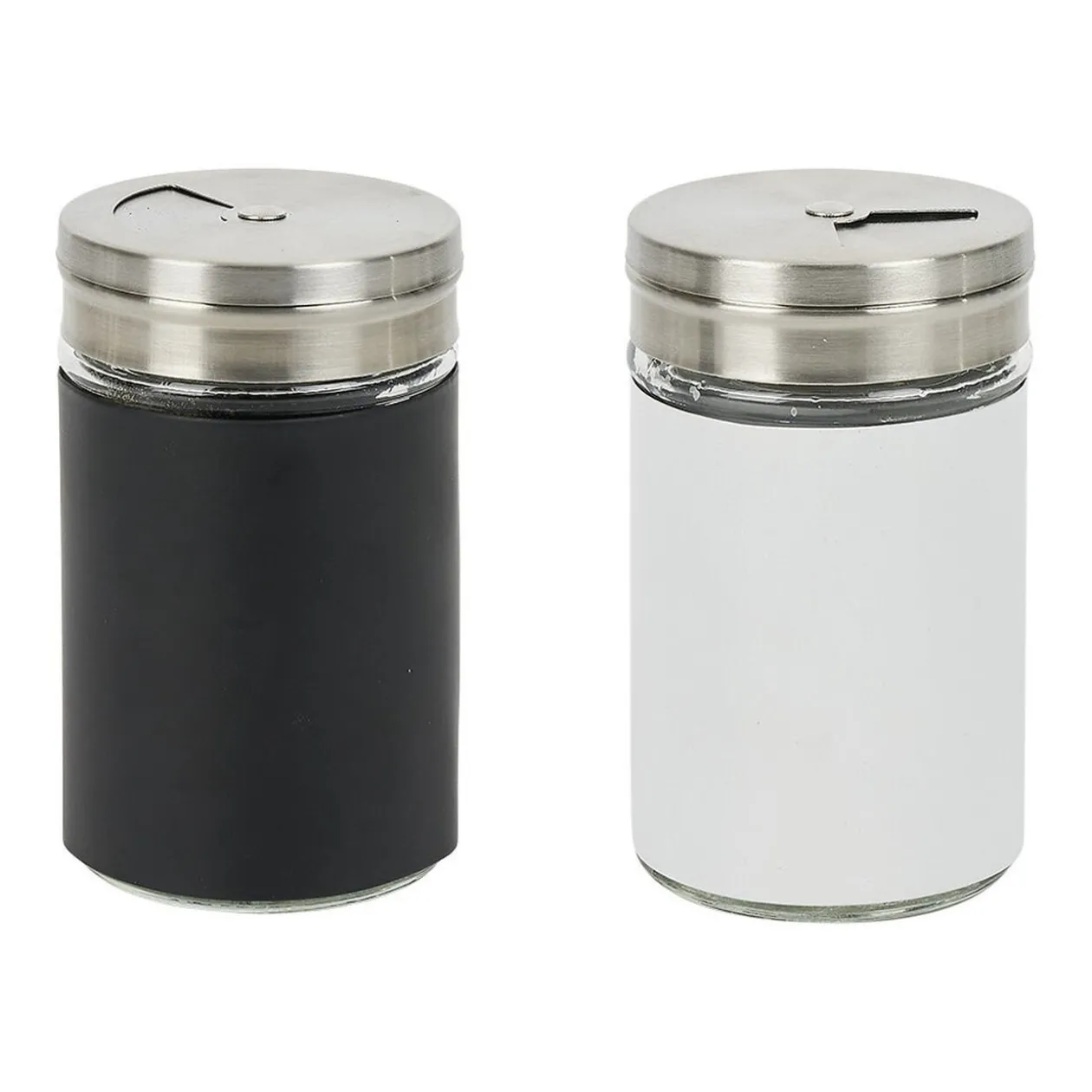 Ce duo de salière et poivrière en verre et métal assortis noir et blanc sera du plus bel effet sur la table quotidienne. Idéal pour ajouter une pointe de goût supplémentaire dans l’assiette.