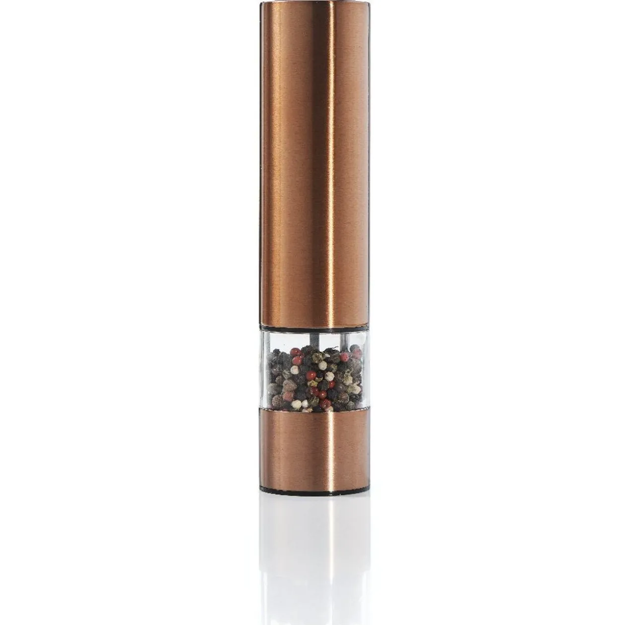 Salière poivrière cuivrée, dim. 5x5x24,5 cm, plastique et acier.