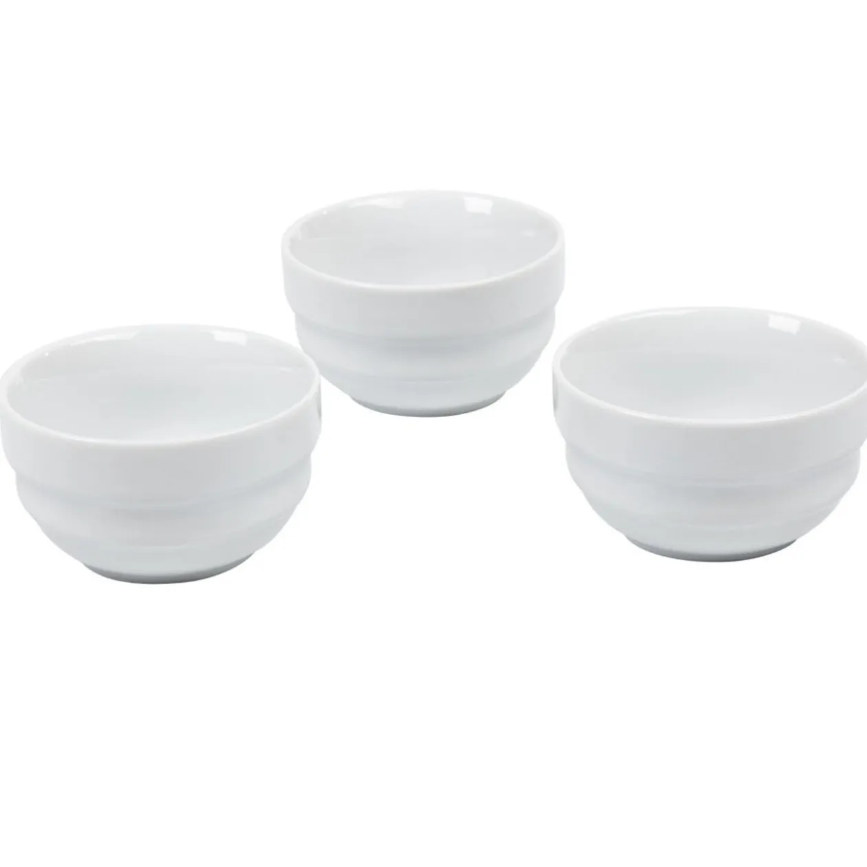 Service à tapas 3 pièces blanc à rainures horizontales, dim. Ø8xh.4,5 cm, porcelaine.