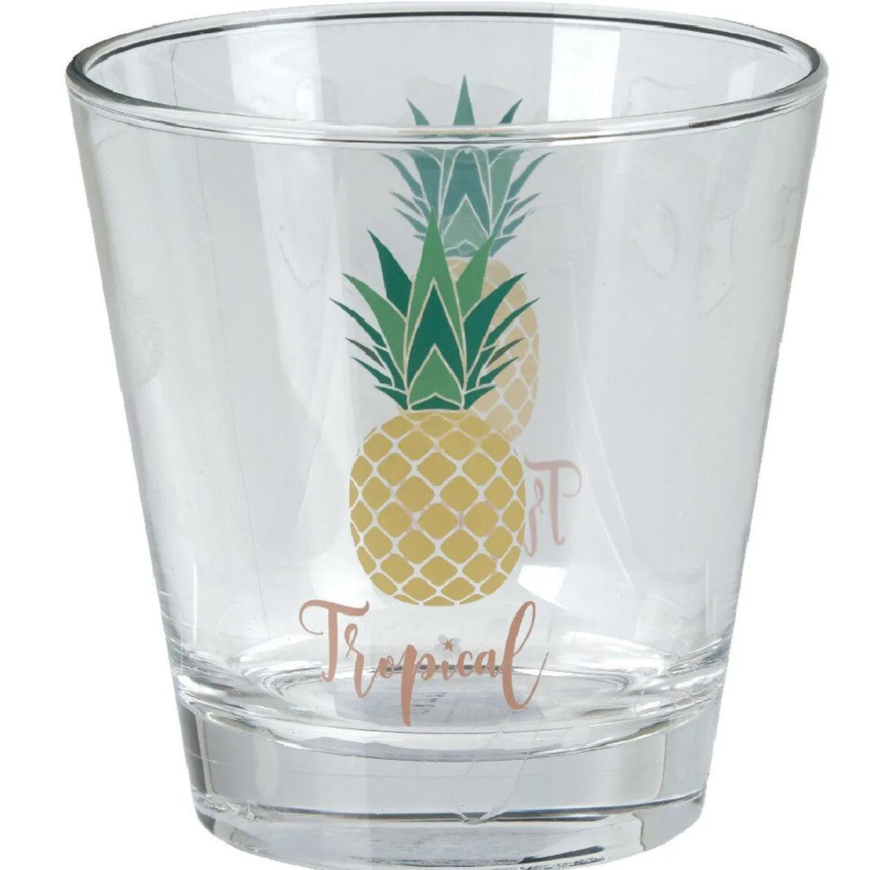 Verre bas d’une contenance de 25cl, style tropical avec inscription et motifs ananas.