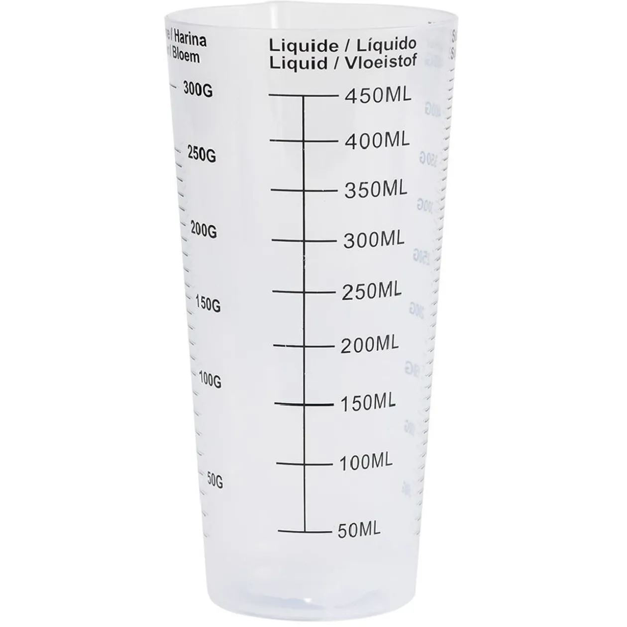 Verre doseur en plastique blanc.